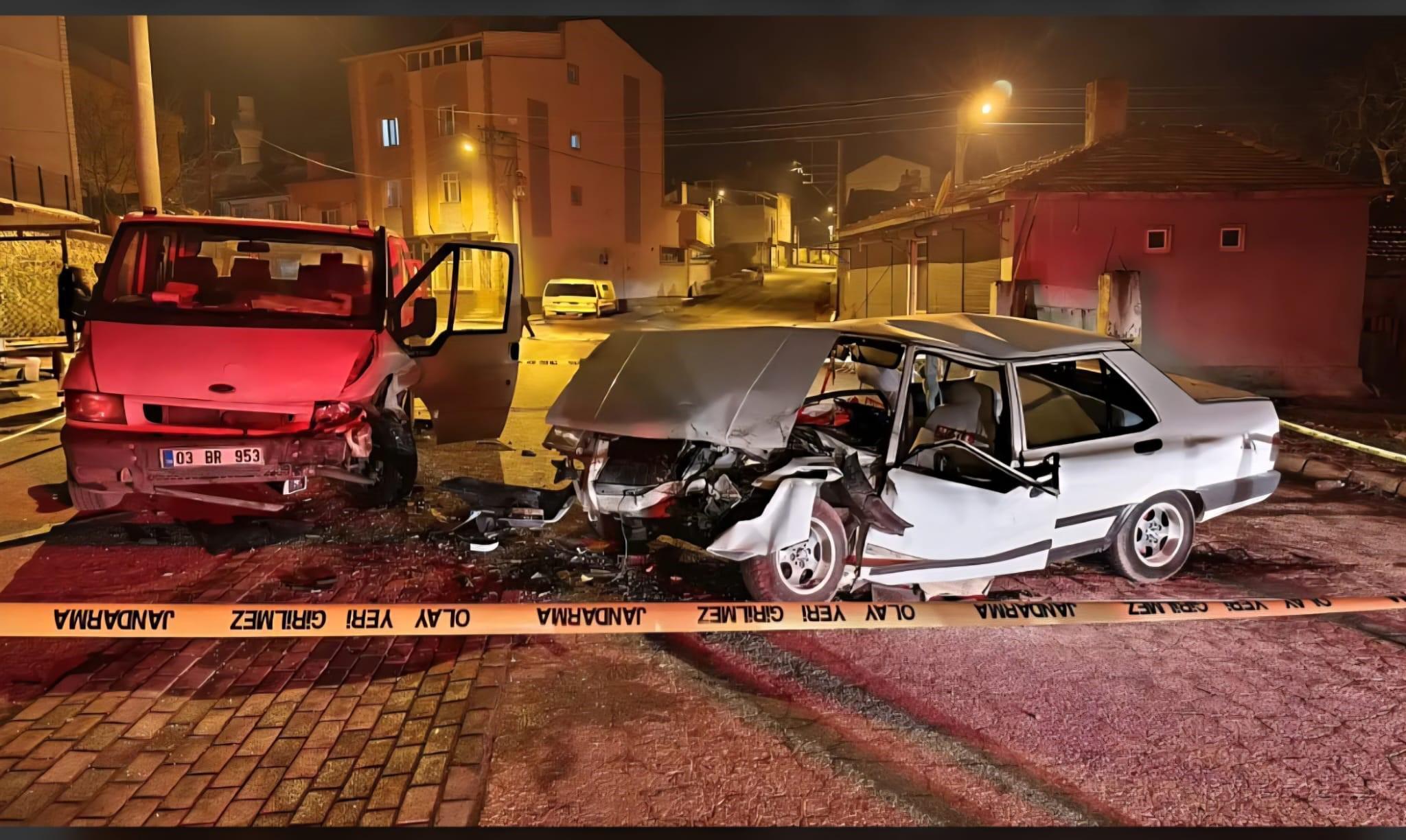 Sülün beldesinde E.C. yönetimindeki 03 AP 391 plakalı otomobil ile M.Y. idaresindeki 03 BR 953 plakalı kamyonet çarpıştı. Kazada otomobil sürücüsü E.C. ile beraberindeki 2 kişi yaralandı. Yaralılar sağlık ekiplerince hastaneye götürüldü. (DHA)