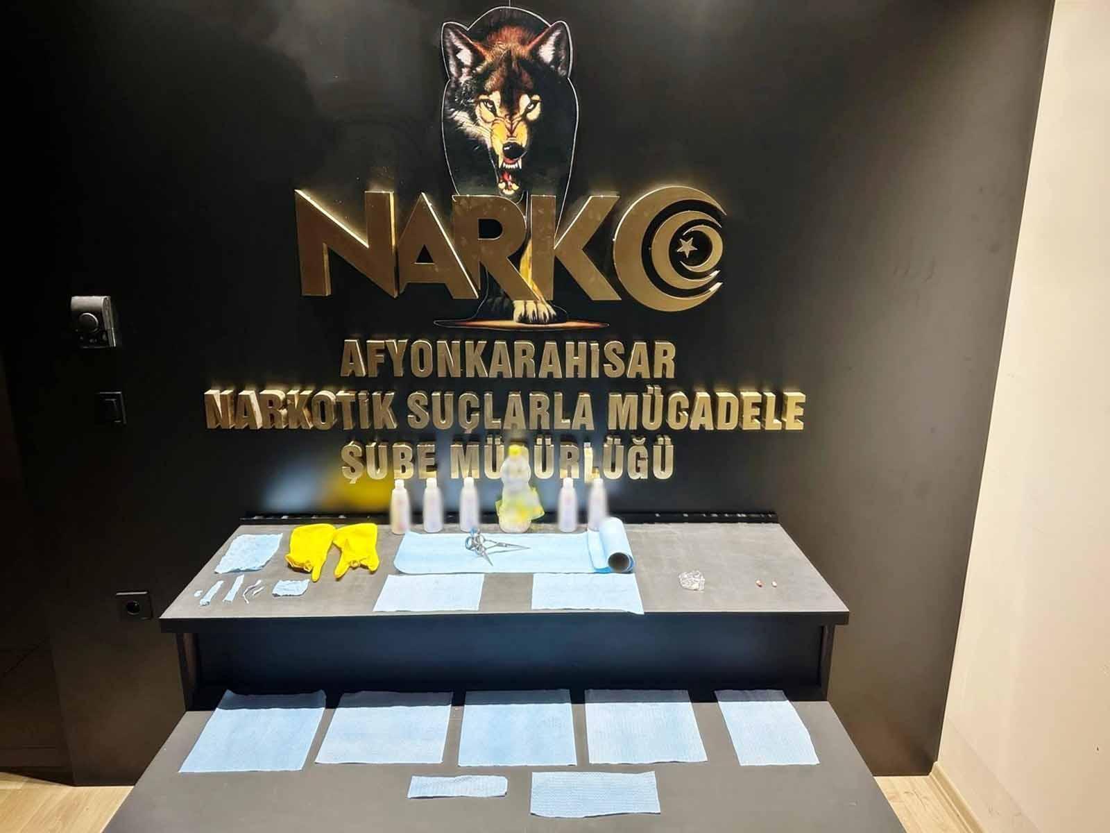 İl Emniyet Müdürlüğü ekiplerinin operasyonunda R.Ç. ve K.K.'nin üzerinde 48,58 gram uyuşturucu, 16 peçeteye emdirilmiş uyuşturucu madde, uyuşturucu emdirilmiş 1 peçete rulosu ve kimyasal madde şişeleri ile uyuşturucu imalatında kullanılan gereçleri ele geçirdi. Şüpheliler ifadelerinin ardından çıkarıldığı mahkemece tutuklandı. (DHA)