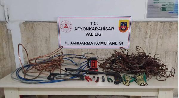 Afyonkarahisar İl Jandarma Komutanlığı Emirdağ İlçe Jandarma Komutanlığı ve Jandarma Suç Araştırma Timi (JASAT) ilçeye bağlı Çatallı köyünde kablo hırsızlığı olduğu ihbarını aldı. İhbarı değerlendiren ekipler, ön plakası sökülmüş bir otomobili durdurdu. Jandarma ekipleri M.M.E. ile M.G.'nin bulunduğu otomobilde arama yaptı. Otomobilin bagaj kısmında 30 kilogram soyulmuş bakır kablo, 15 kilogram da yüksek gerilim kablosu ile hırsızlıkta kullanıldığı düşünülen yan keski, 2 maket bıçağı, kerpeten, demir testeresi, 2 inşaat eldiveni, el feneri, balta ve el tartısı ele geçirildi.