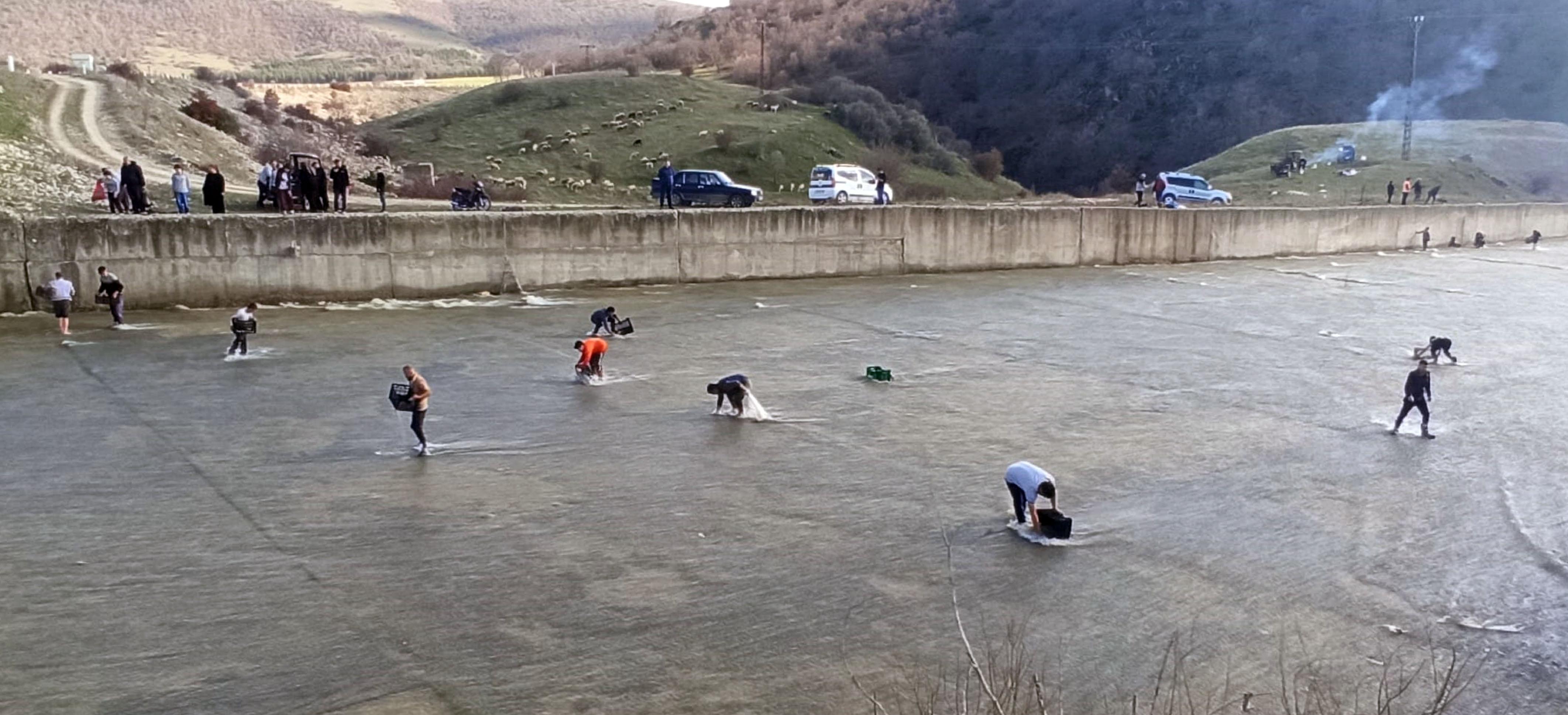 Taşan barajdan çuval ve kasayla balık yakaladılar