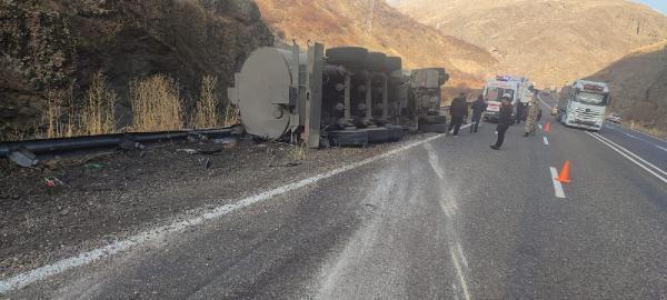 Ağrı’da devrilen asfalt yüklü tankerin sürücüsü hayatını kaybetti