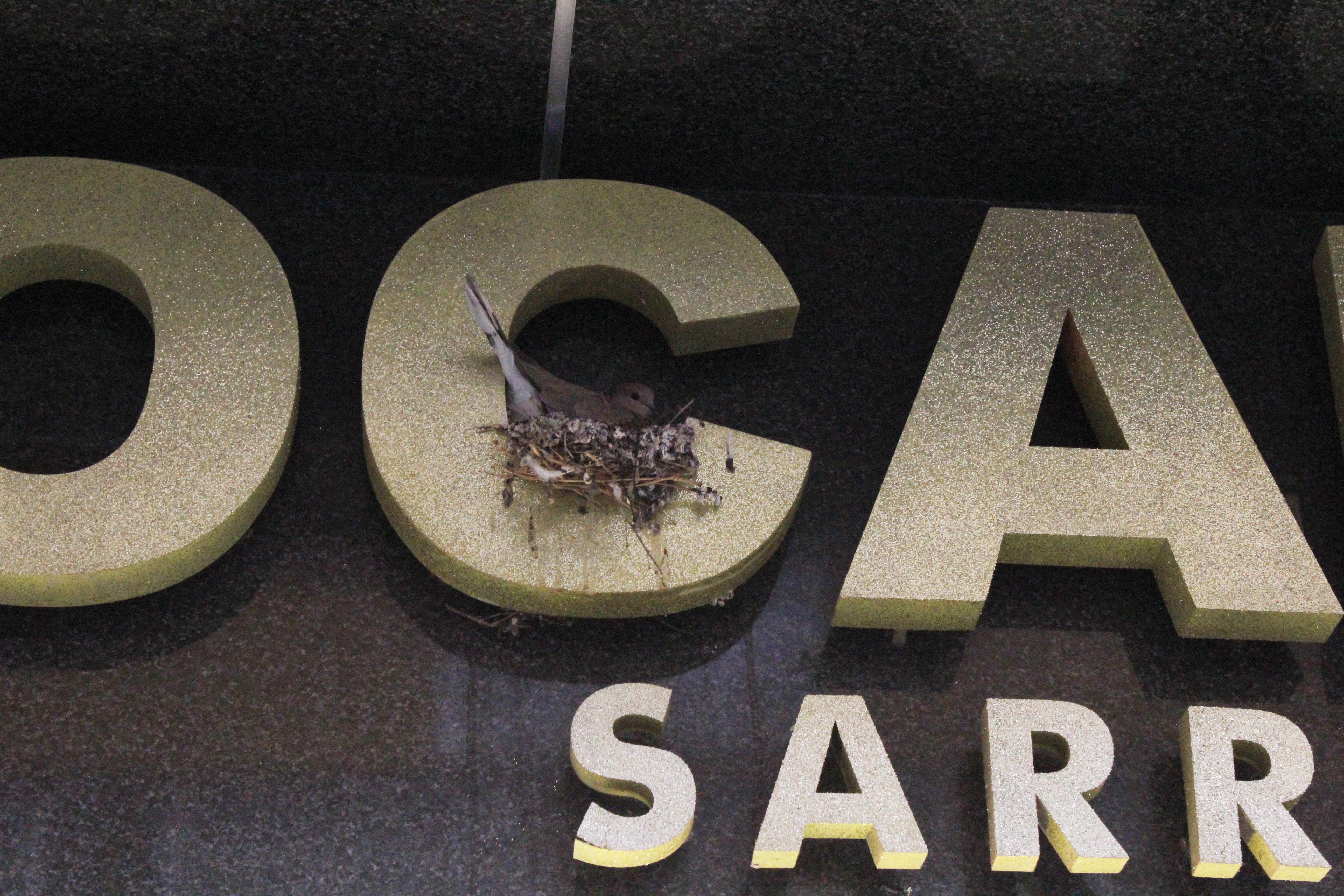 Erkan ALTUNTAŞ/AKSARAY, (DHA)- AKSARAY’da bir kumru, sarraf dükkanın tabelasına üzerine yuva yaptı.