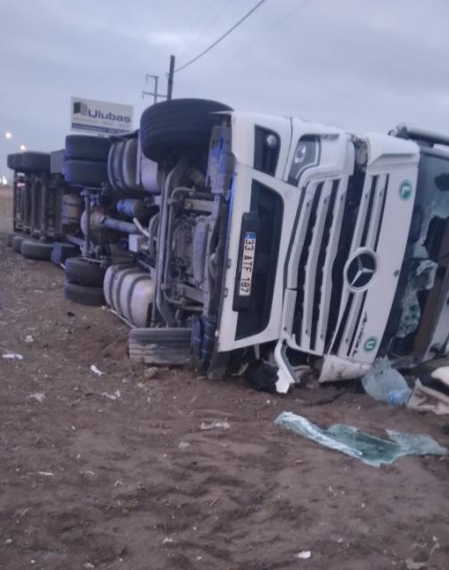 Erkan ALTUNTAŞ /AKSARAY, (DHA)- AKSARAY’da kontrolden çıkıp devrilen TIR'ın sürücüsü Murat Özavcı (46) ve babası Cumalı Özavcı (70) yaralandı. Kaza, saat 07.00 sıralarında Aksaray-Adana kara yolunun 5’inci kilometresinde meydana geldi. Murat Özavcı yönetimindeki 33 AFT 187 plakalı TIR, sürücüsünün kontrolünden çıkıp, devrildi. Kazada, sürücü Murat Özavcı ve babası Cumalı Özavcı yaralandı. Yoldan geçen diğer sürücülerin ihbarı üzerine bölgeye sağlık ve polis ekipleri sevk edildi. Yaralı baba ile oğlu, ambulanslarla Aksaray Eğitim ve Araştırma Hastanesine kaldırıldı. Kazaya ilişkin inceleme sürüyor. (DHA)FOTOĞRAFLI