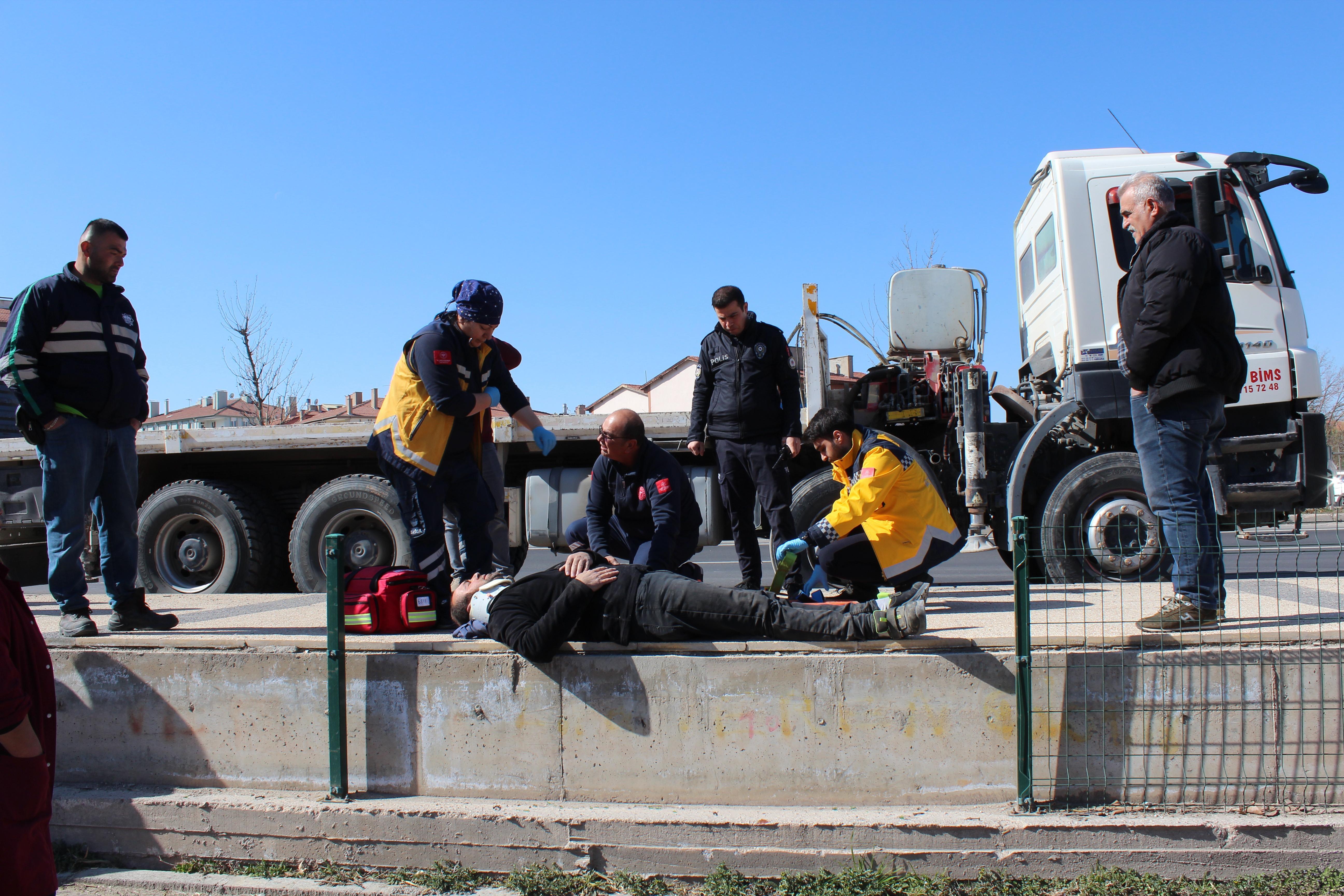 Kaza, saat 10.30 sıralarında Büyük Bölcek Mahallesi Kapadokya Bulvarı'nda meydana geldi. Suat Söyler yönetimindeki 68 ABK 076 plakalı vinç,seyir halinde iken hidrolik bölümü yaya üst geçidine çarptı. Çarpanın etkisiyle hidrolik kısmı, yerinden sökülüp yola düştü. Sürücü Söyler da yaralandı. Çevredekilerin ihbarı üzerine kaza yerine sağlık ve polis ekipleri sevk edildi. Yaralı Söyler, ambulansla Aksaray Eğitim ve Araştırma Hastanesine kaldırıldı.