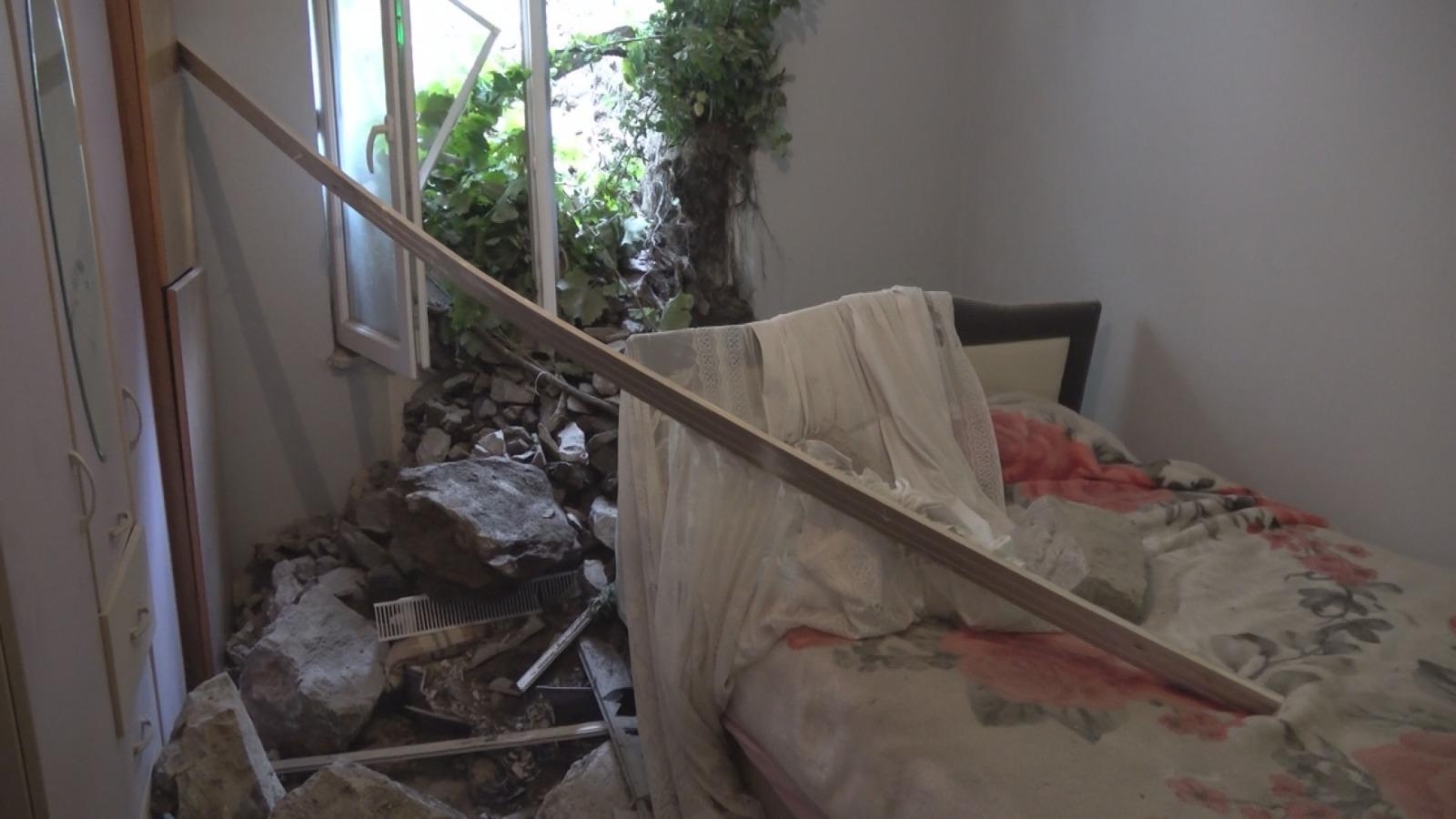 Gürültüyle deprem olduğunu zannettiklerini belirten Menekşe Sarı, “Nasıl oldu biz de bilemedik. Biz balkonda kahvaltıdaydık, bir anda büyük bir ses duyduk. Deprem oluyor sandık ama değildi. Sonra tozları görünce, yan taraflardan bir yer tutuştu sandık. Odaya inince her tarafın battığını gördük. Dışarısı bahçe, komşular bahçelerini suladıkça su toprağı yumuşatmış. Duvar, suyu eme eme kaymış ve evin içine girmiş. Bize ait sadece 1 metrelik bir yer vardı, kayan bütün toprak ve kayalar oraya yığılmış. Çok büyük bir gümbürtü oldu. Çok korktuk ama Allah’tan can kaybı olmadı. Yetkililerden buranın boşaltılmasını ve gerekli çalışmanın yapılmasını istiyoruz” dedi. (DHA)