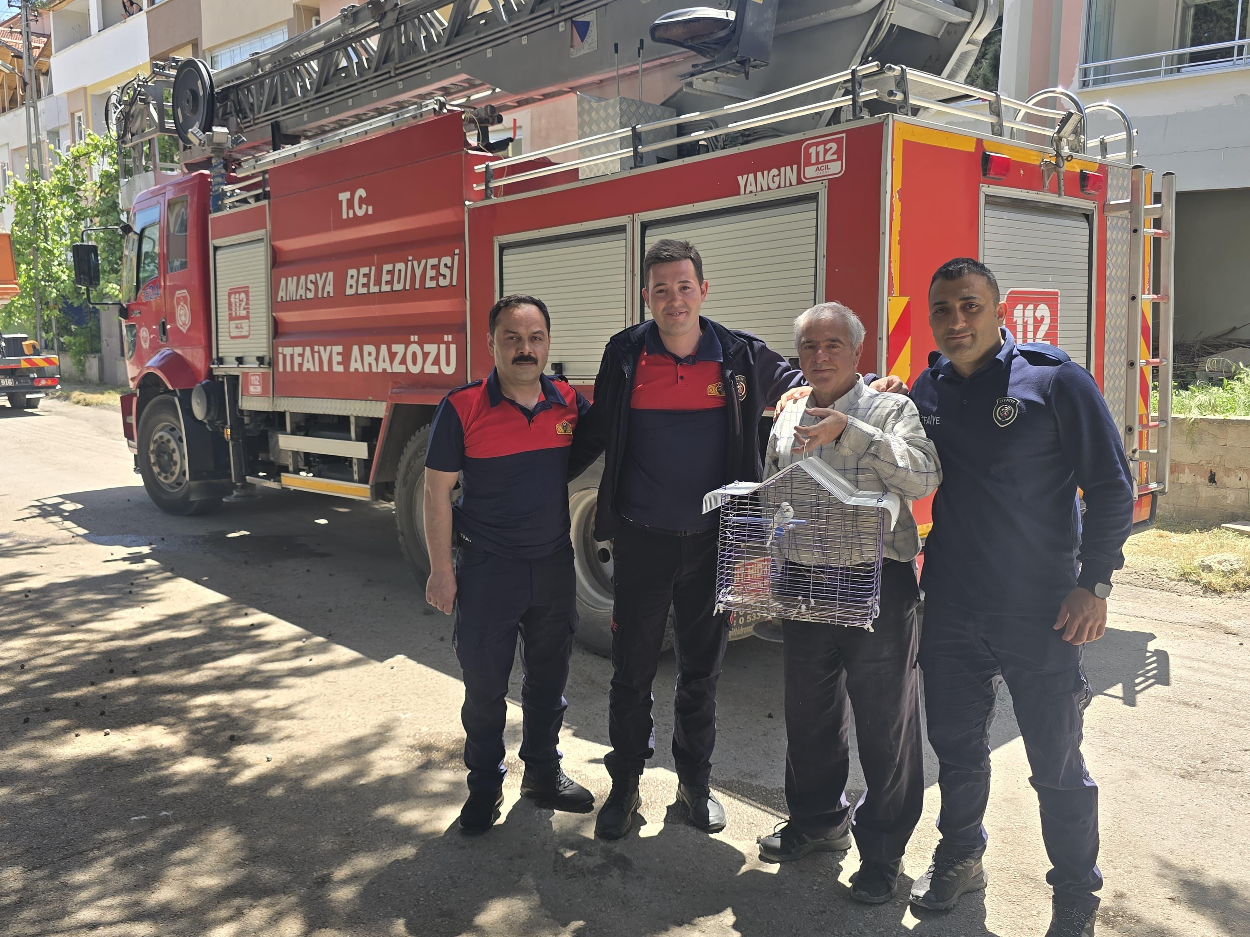 Şeyhcui Mahallesi Osmanlı Evleri mevkisinde kafesinden kaçan muhabbet kuşu, yakındaki bir ağacın tepesine kondu. Kuşunu yakalamak için ağaca çıkan sahibi, mahsur kaldı. Çevredekilerin ihbarıyla adrese Amasya Belediyesi İtfaiye Müdürlüğü ekipleri sevk edildi. Ekipler, muhabbet kuşu ile sahibini mahsur kaldığı yerden kurtardı.(DHA)