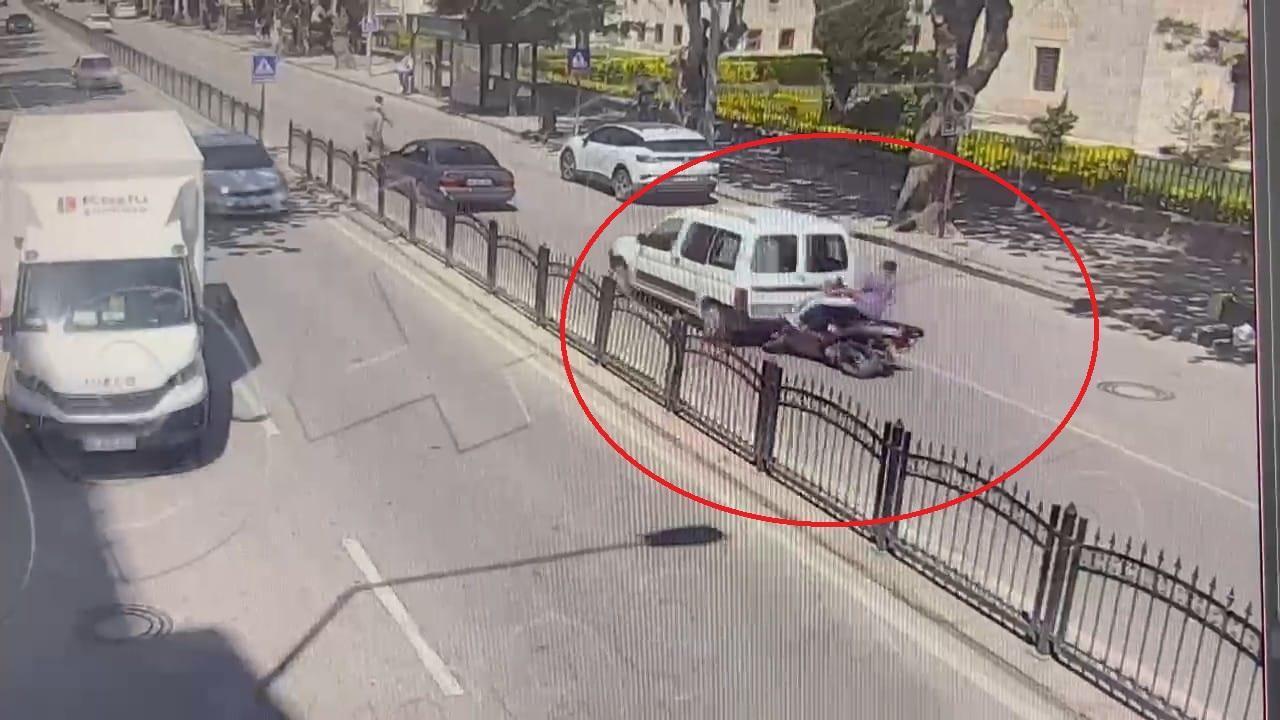 Motosikletin hafif ticari araca çarptığı kaza kamerada