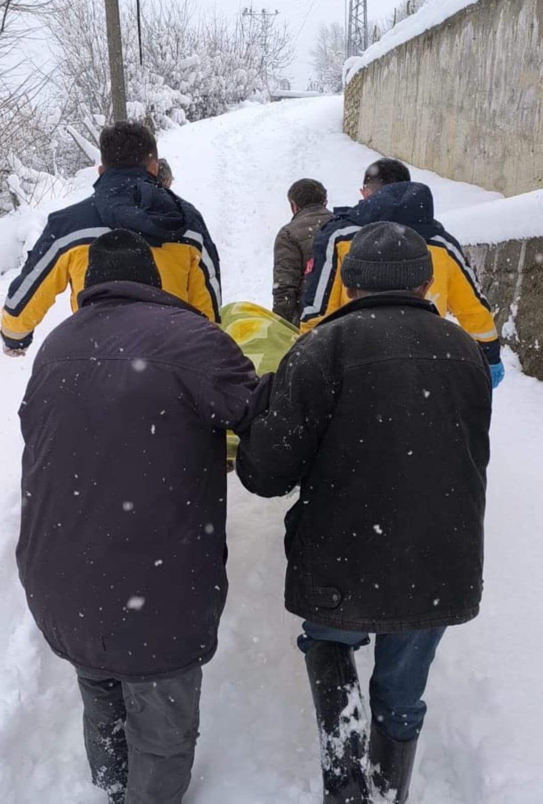 Taşova ilçesine bağlı Gökpınar köyünde ikamet eden Zeliha Aydemir (77), rahatsızlandı. Yakınları, Aydemir'i kendi araçlarıyla hastaneye götürmek isterken yoğun kar yağışı nedeniyle kapanan yolda mahsur kaldı. Durumu 112 Acil Çağrı Merkezi'ne bildirdi. İhbarla köye gelen ekipler, paletli ambulansla Zeliha Aydemir'i Taşova Devlet Hastanesi'ne kaldırdı. Tedaviye alınan Zeliha Aydemir'in durumunun iyi olduğu öğrenildi. (DHA)