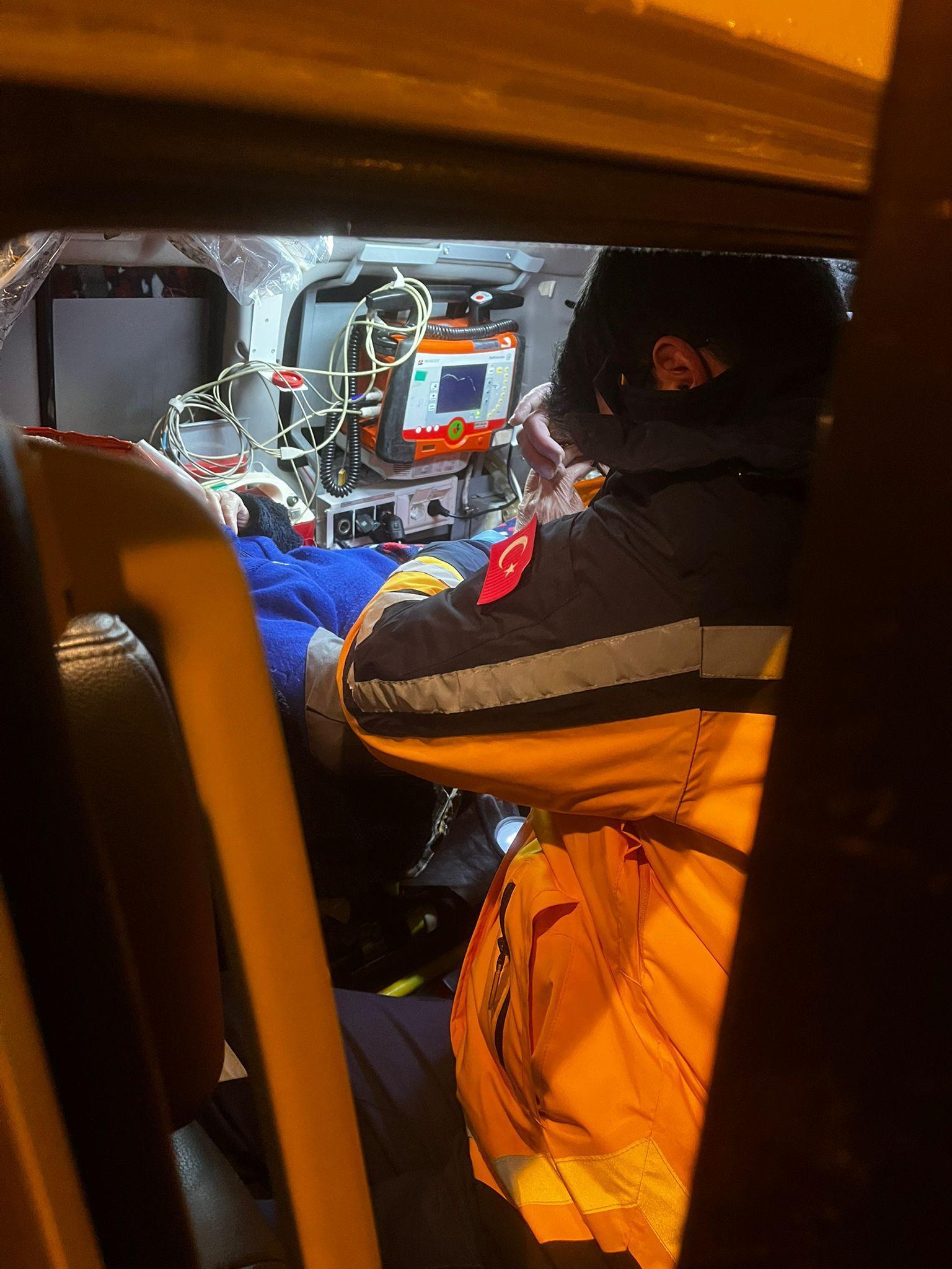Yolu kapalı köyde sandalyeden düşüp başını çarptı, paletli ambulansla hastaneye ulaştırıldı