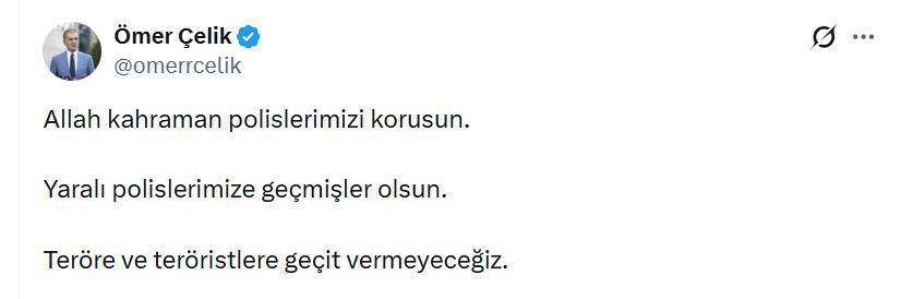 AK Parti'li Çelik, sanal medya hesabından yaptığı açıklamada, "Allah kahraman polislerimizi korusun. Yaralı polislerimize geçmişler olsun. Teröre ve teröristlere geçit vermeyeceğiz" dedi. (DHA)