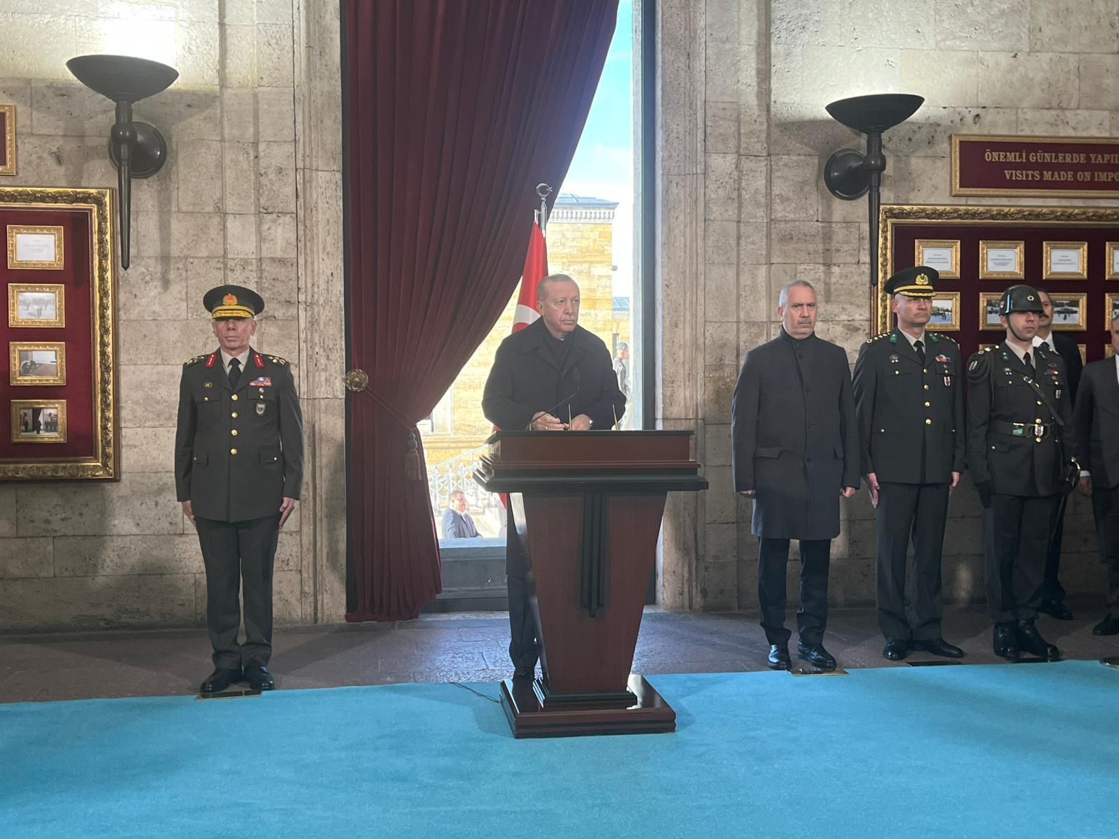 Cumhurbaşkanı Erdoğan ve beraberindekiler, daha sonra Misak-ı Milli Kulesi'ne geçti. Cumhurbaşkanı Erdoğan, Anıtkabir Özel Defteri'ni imzalayarak, şunları yazdı: