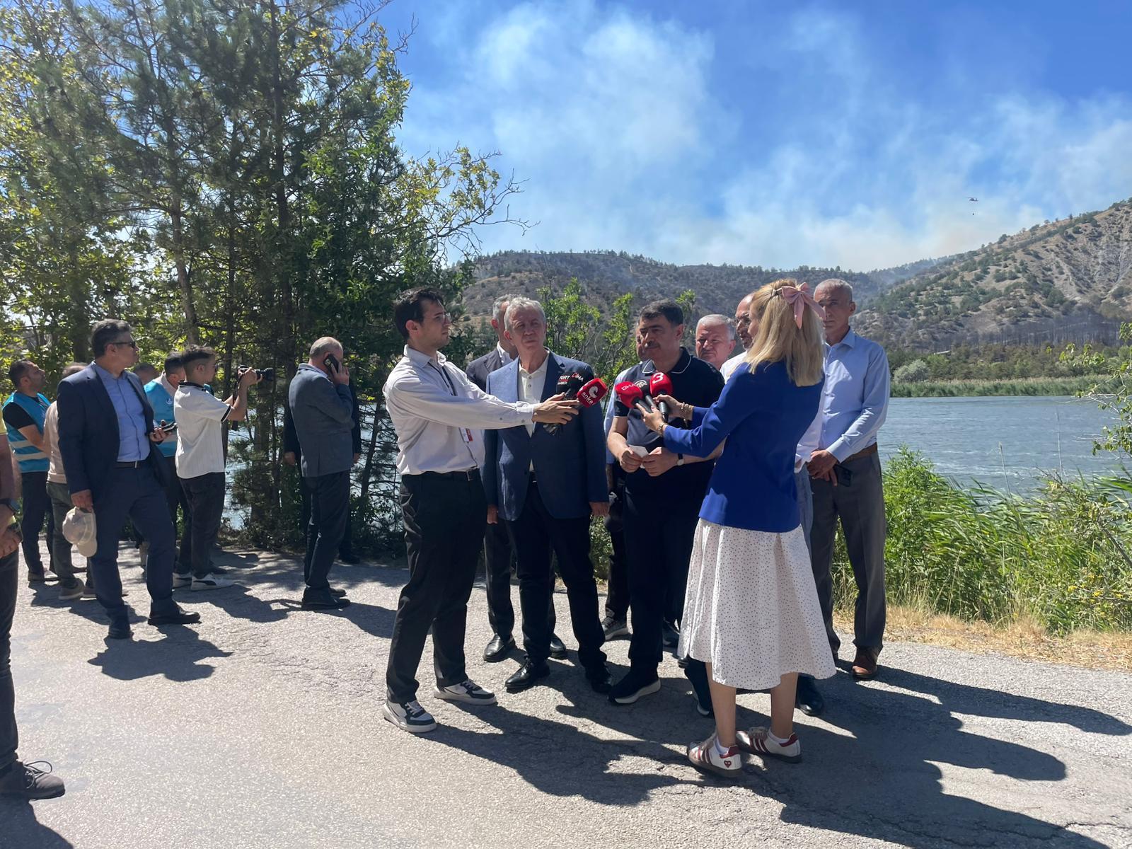 Mansur Yavaş da rüzgarın söndürme çalışmalarını zorlaştırdığını belirterek, "İnşallah kıza zamanda söndüreceğiz" diye konuştu. (DHA)