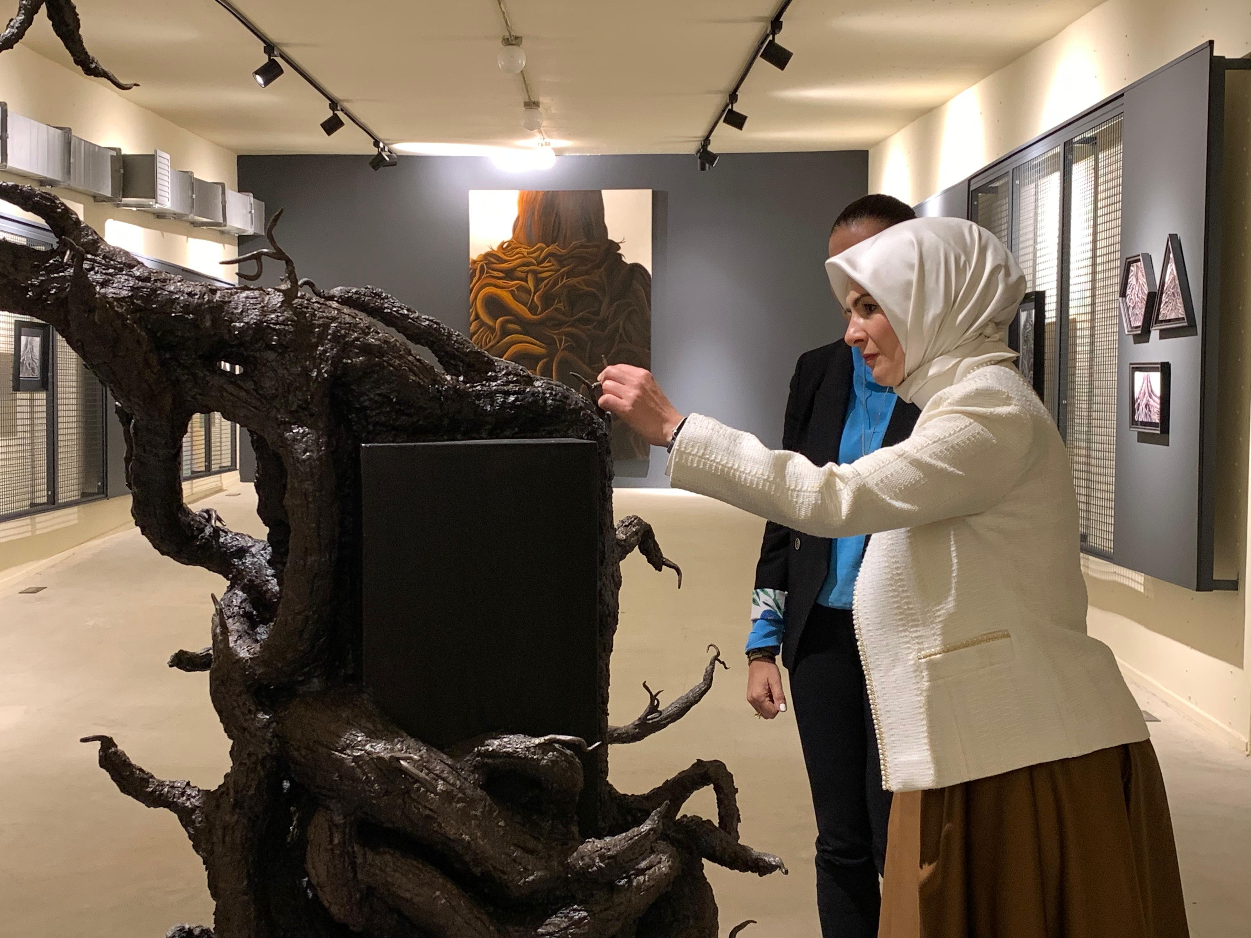 Samet ÖKSÜZ-Ali Eren İĞDE/ANKARA, (DHA)- AİLE ve Sosyal Hizmetler Bakanı Mahinur Özdemir Göktaş, gazeteci Hande Fırat'ın resim, heykel, yerleştirmeler ve dijital eserlerden oluşan 'Devriamber' sergisini ziyaret etti.