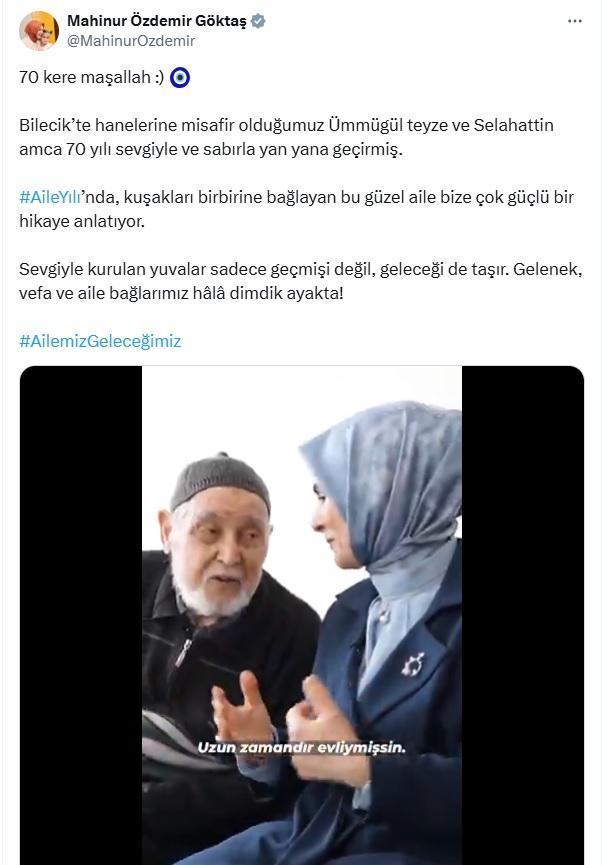 ANKARA, (DHA)- AİLE ve Sosyal Hizmetler Bakanı Mahinur Özdemir Göktaş, 'Aile Yılı' kapsamında Bilecik'te yaşayan 70 yıllık evli Ümmügül-Selahattin Yılmaz çiftini ziyaret etti.