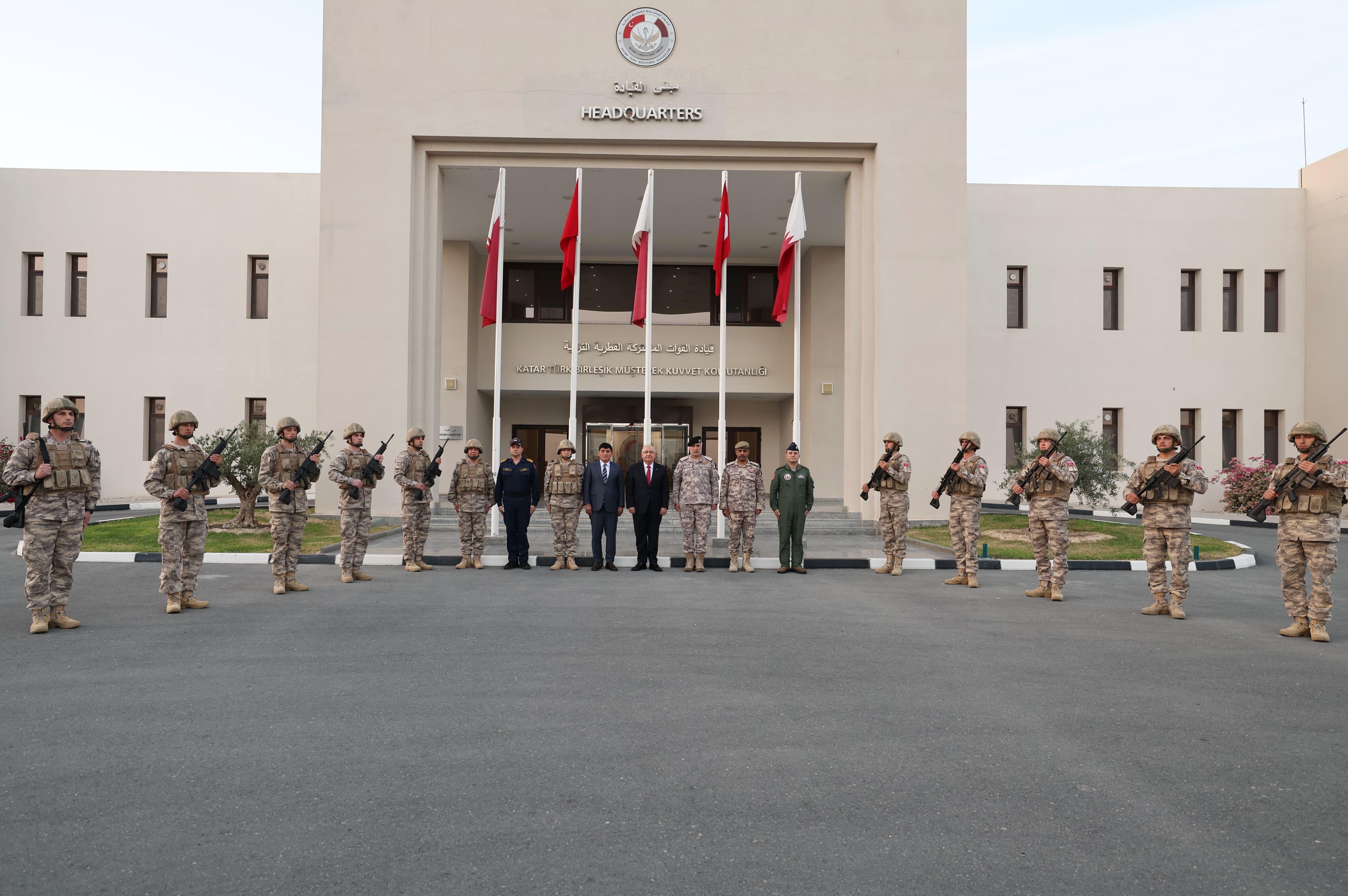 Bakan Güler, “Resmî ziyaret kapsamında dost ve kardeş ülke Katar’da sizlerle bir arada olmaktan büyük bir mutluluk duyuyorum. Yüzyıllara dayanan tarihî ve kültürel bağlar üzerine inşa edilen Türkiye ile Katar arasındaki ilişkiler hemen her alanda hızla gelişmeye devam etmektedir. İki kardeş ülke, ortak bir medeniyetin ve inancın mirasçıları olarak birbirlerine her zaman destek olmuşlardır. Zor zamanlarda ülkelerimizin birbirlerine gönülden yardım etmesi Türk ve Katar halkları arasındaki dostluk ve kardeşlik bağlarını ve yardımlaşmanın gücünü tüm dünyaya göstermiştir. Katarla dostluk ve kardeşliğimizin en açık göstergeleri, 2015 yılından itibaren Türk Kara Unsur Komutanlığımızın, 2017 yılından itibaren de Türk-Katar Birleşik Müşterek Kuvvet Komutanlığımızın burada sürdürdüğü güvenlik, eğitim ve askerî danışmanlık faaliyetleridir. Ayrıca son iki yıldır Katar Türk Deniz ve Hava Unsur Komutanlıklarımız da Katar’ın güvenliği ile Katar Deniz ve Hava Kuvvetlerinin savunma imkân ve kabiliyetlerini desteklemeye yönelik önemli katkılar sunmuşlardır. Sizler; buradaki varlığınızla dostlarımıza güven verirken, iki ülke arasındaki dayanışma ve ortak güvenlik anlayışını da güçlendiriyorsunuz. Her birinizin yüksek disiplini, eğitim seviyesi ve görev bilinciyle Türkiye Cumhuriyeti’nin gücünün, kararlılığının ve güvenilirliğinin temsilcisi olduğunu bilhassa vurgulamak isterim. Bu kapsamda siz kahraman silah arkadaşlarımın vazifelerinizi en iyi şekilde yerine getirme gayretinde olduğunuzu memnuniyetle müşahede ediyorum” ifadelerini kullandı.