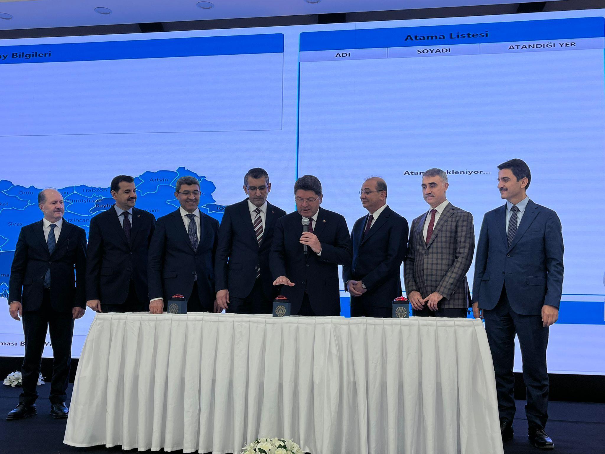 Adalet Bakanı Yılmaz Tunç, Ankara Dikmen Hakimevi’nde gerçekleştirilen 300’ü açıktan atama, 100’ü görevde yükselme sınavı ile olmak üzere toplam 400 icra müdürü ve icra müdür yardımcısının görev yerlerinin kura ile belirlendiği törene katıldı. Bakan Tunç, "Açıktan atanan 300 icra müdür ve müdür yardımcısı adayımızdan 292’sinin hukuk fakültesi mezunu olması bizler için ayrıca memnuniyet vericidir. Bu önemli veri, icra teşkilatımızın sadece nicelik olarak değil, nitelik olarak da güçlendiğini gösteriyor. Ayrıca adaylarımızdan 195’inin kadın olması kadınların kamu hizmetlerinde üstlendiği rolün ve temsil gücünün artması bakımından da son derece kıymetlidir. Atananların yaş ortalamasının 26 olması, teşkilatımızın ne kadar dinamik bir yapıya kavuştuğunu da göstermektedir. Genç ve dinamik yapısıyla icra alanında görev yapacak personelimizin aynı zamanda güçlü bir hukuki donanımla mesleğe başlamasını, hukuk devletinin bir gereği olan adil, şeffaf ve güven veren bir icra sisteminin tesisi açısından çok değerli buluyoruz" ifadelerini kullandı.