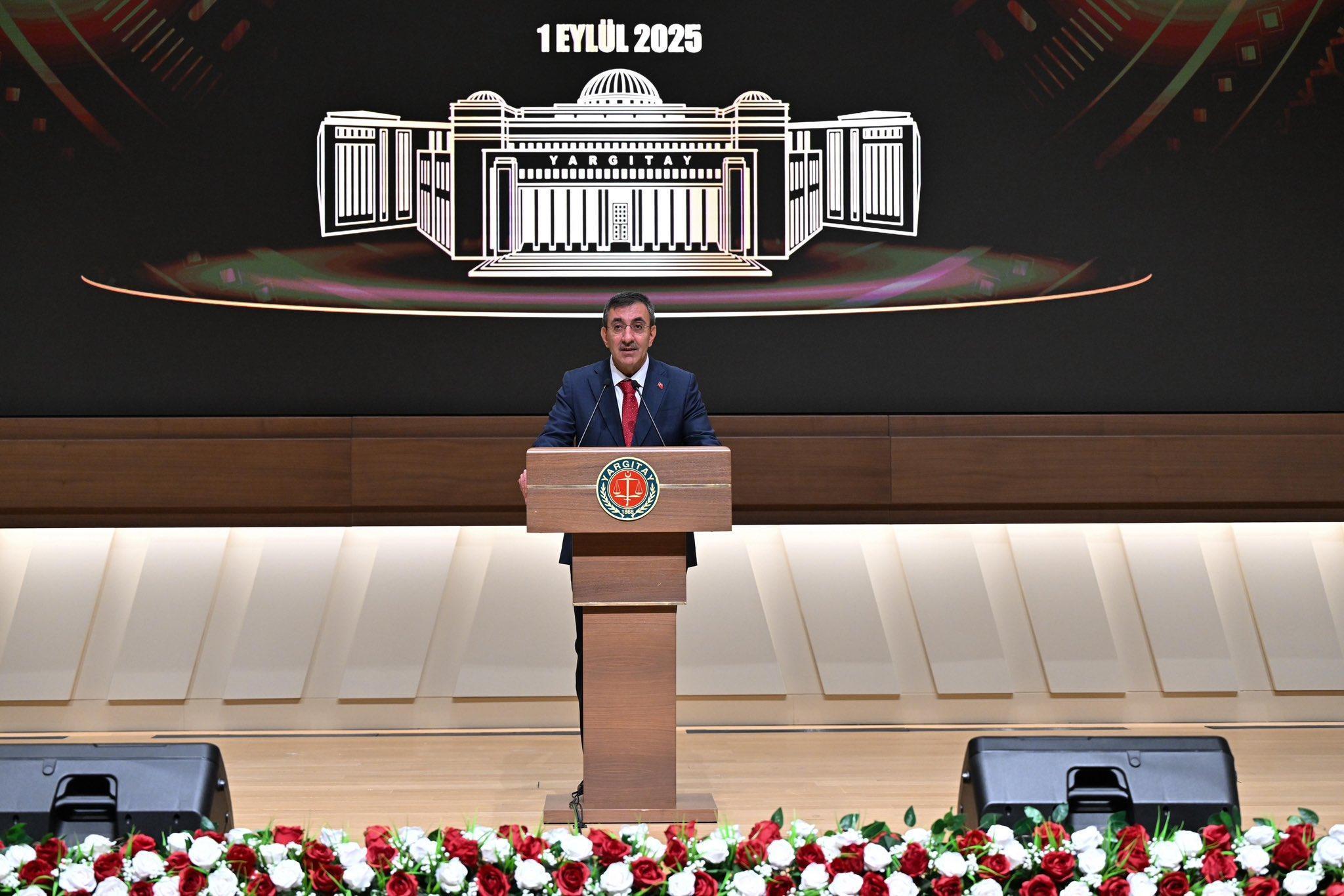 Cumhurbaşkanı Yardımcısı Yılmaz, yeni adli yılın tüm adalet camiası için hayırlı olmasını dilediğini ifade ederek, "Her bir vatandaşın hakkının korunması ve güçsüzün güçlüye ezdirilmemesi hayati önem taşır. Bir hükmün ya da kararın değeri, yalnızca dayandığı yazılı maddelerde değil, milletin vicdanında da kabul gördüğünde ortaya çıkar. Bu sebeple yargı, bir erk olmanın ötesinde, devlet ile millet arasındaki güven bağının da en güçlü teminatıdır. Demokratik bir ortamda yargı kararları elbette ki eleştiriye açıktır. Bir mahkemenin verdiği kararla ilgili olarak çok katmanlı adalet sistemi içinde hak arama ve itiraz imkanları bulunmaktadır. Ancak, hiçbir kişi ve kurumun yargı mensuplarına hakaret etme, adalet kurumuna duyulan güveni zedeleme ve bağımsız, tarafsız yargıyı etki altına alma hakkı yoktur. Türk milleti adına karar veren yargının vakarını muhafaza etmek ve toplumsal adalet inancını diri tutmak, bizim için vazgeçilmez bir sorumluluktur" diye konuştu.