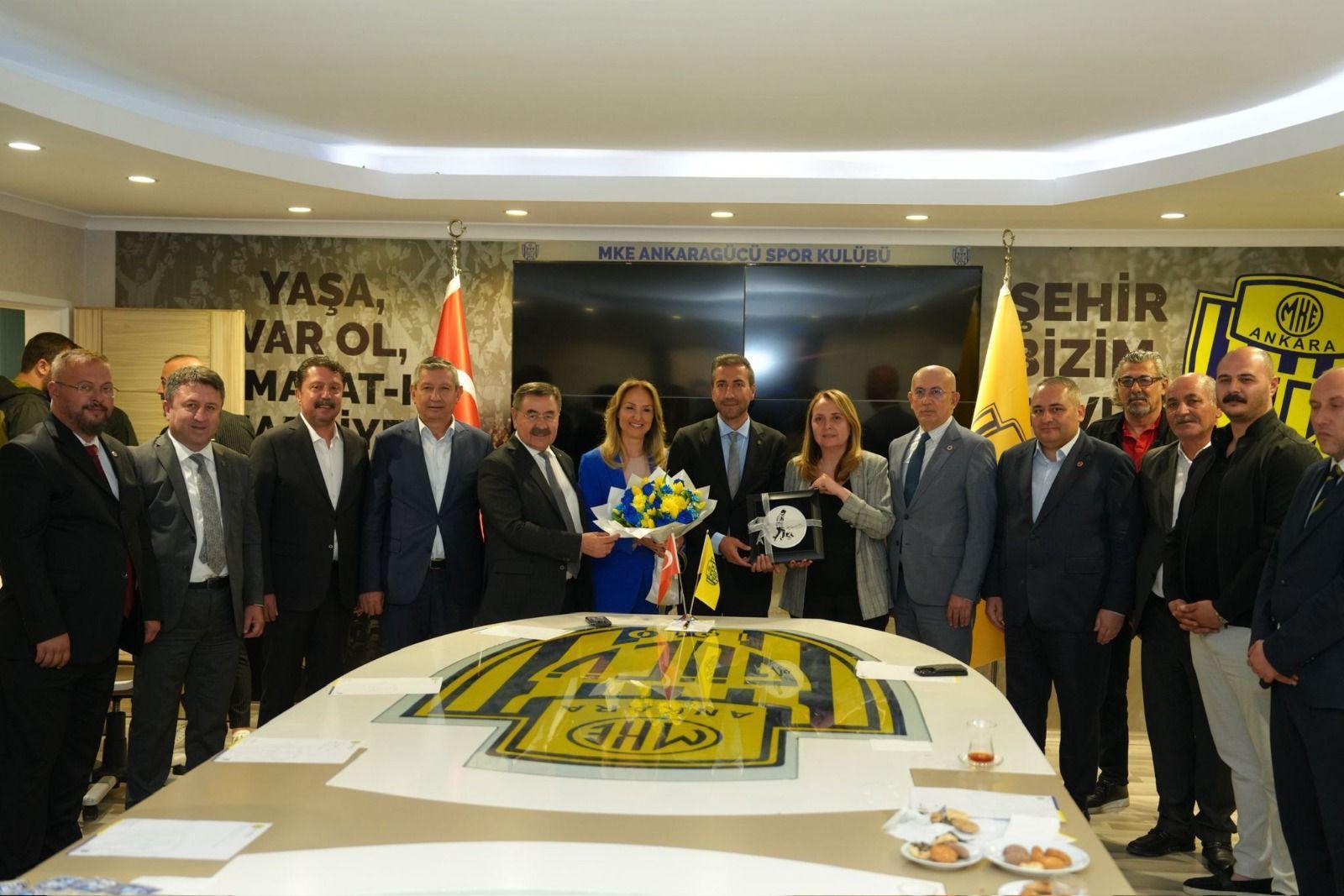 CHP Genel Başkan Yardımcısı Aylin Nazlıaka, CHP Ankara Milletvekili Semra Dinçer, CHP Ankara İl Başkanı Ümit Erkol ile Keçiören Belediye Başkanı Mesut Özarslan, Gölbaşı Belediye Başkanı Yakup Odabaşı, Beypazarı Belediye Başkanı Özer Kasap ve Kalecik Belediye Başkanı Satılmış Karakoç, MKE Ankaragücü Spor Kulübü'nü ziyaret etti. Yeni seçilen Kulüp Başkanı Gazi Ercüment Tekin ve yönetim kurulu üyeleriyle bir araya gelen heyet, Ankaragücü'nün yeni yönetimini tebrik ederek hediye takdim etti.