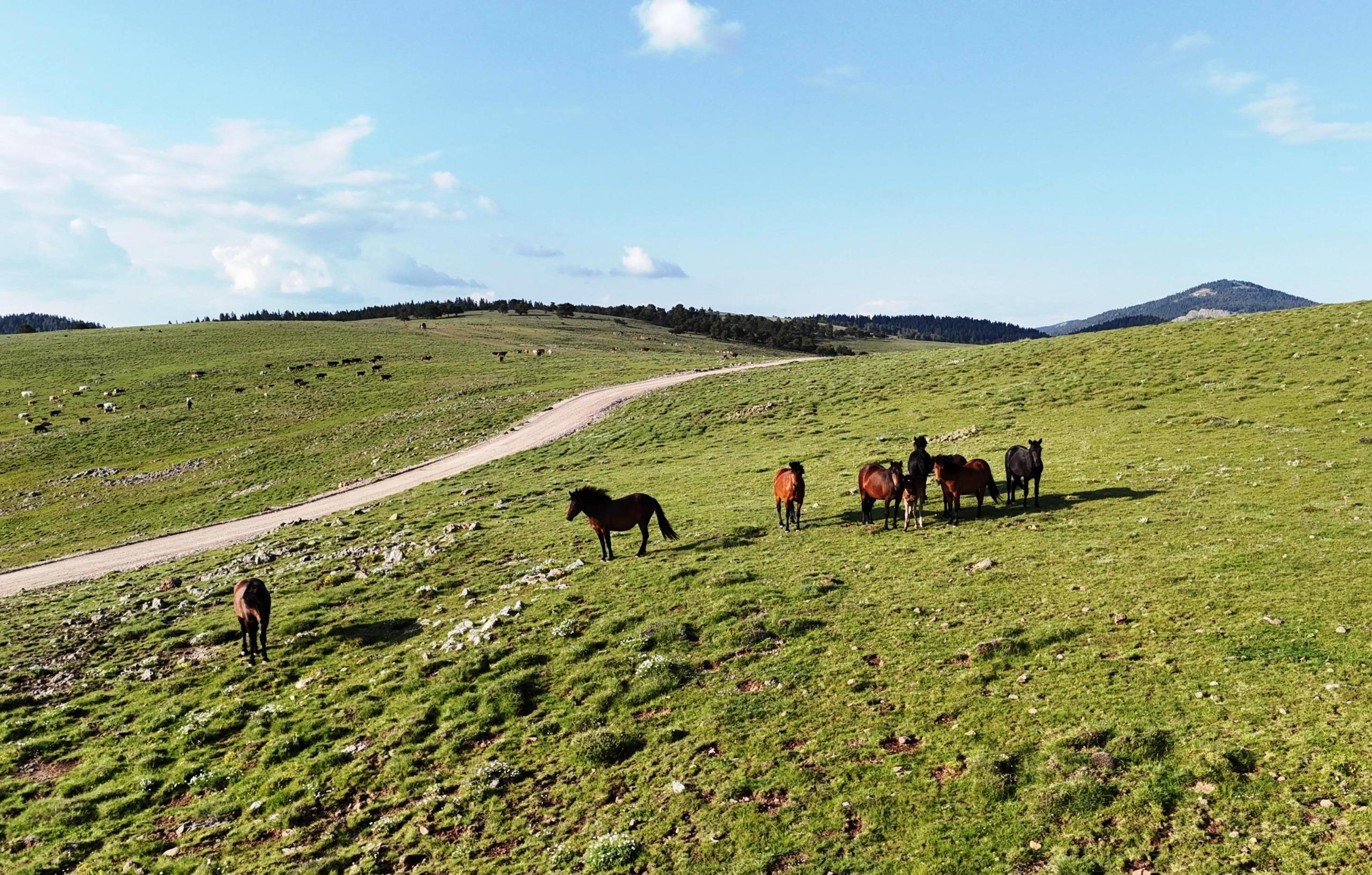Ankara'da Kızılcahamam ve Çubuk ilçeleri arasındaki yaylalarda yılkı atları görüldü. Doğada koşuşurken görüntülenen atlar, doğaseverlerin ilgisine neden oldu. Doğasever Mehmet Kaan Pehlivan'ın görüntülediği atlar, yaylada otlanırken ve koşarken dron kamerasına yansıdı. Pehlivan, çıktığı yaylada kendisini büyüleyen bir manzara ile karşılaştığını belirterek, "İnsan eli değmeden, tamamen özgürce yaşayan bu atlar doğanın gerçek sahipleri gibi. Eskiden köylüler tarafından evcil olarak kullanılıyorlarmış ama zamanla teknolojiye geçişle birlikte artık serbest bırakılmışlar ve doğayla bütünleşmişler. Şimdi ise onları izlemek, bu eşsiz uyumu görmek gerçekten tarif edilemez bir duygu" diye konuştu. (DHA)
