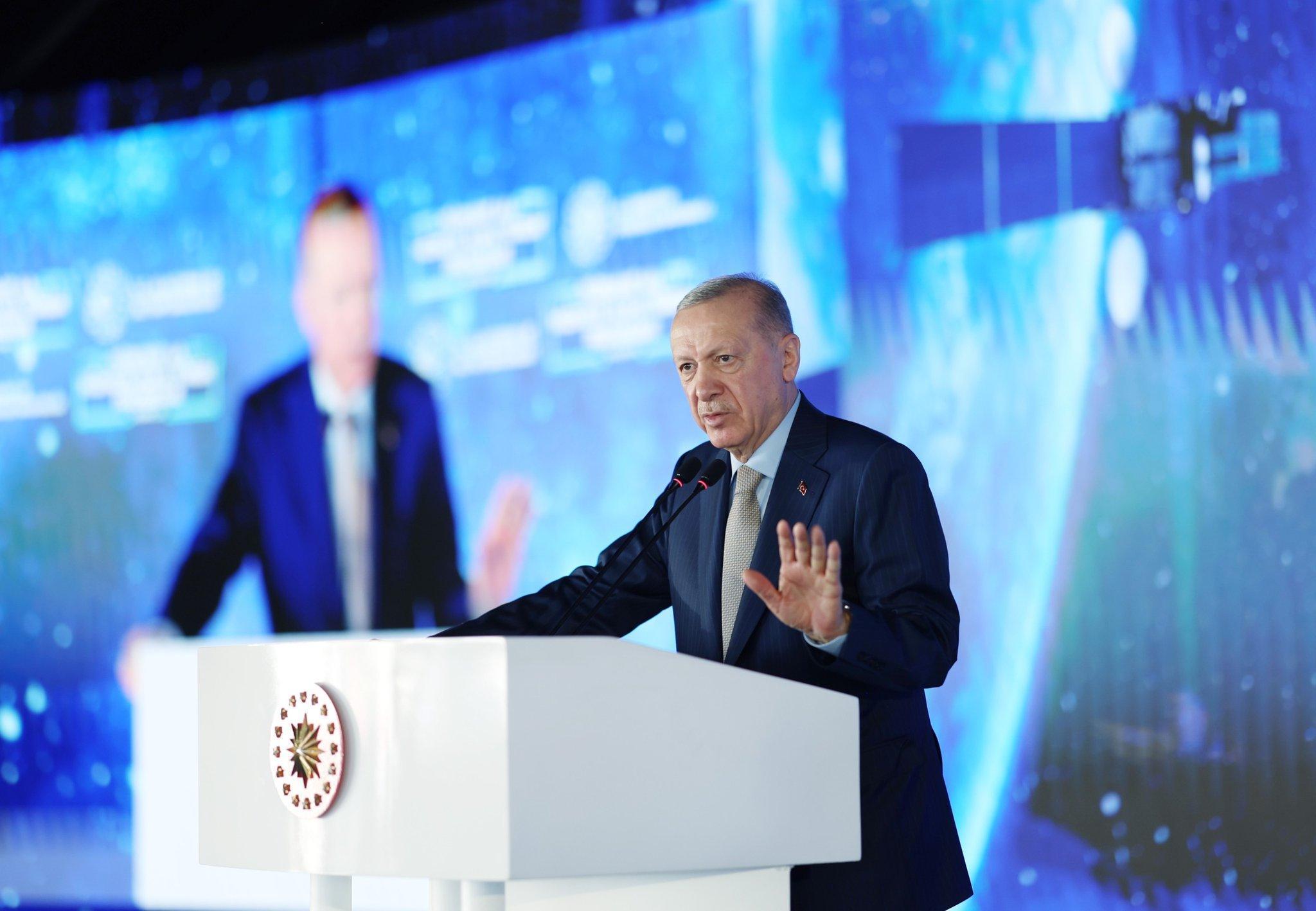 Türkiye'nin önünde tarihi bir fırsat penceresinin açıldığını söyleyen Erdoğan, "Küresel sistemde hak ettiğimiz yere gelmeye çok yakınız. Hiç kimsenin şahsi ikbali özellikle bu uğurda, bu fırsatı heba etmesine izin veremeyiz. Daha önce dünyada benzer değişimler olurken maalesef Türkiye kendi çekişmeleriyle meşguldü. Bilimsel ve teknolojik ilerlemeler yaşanırken biz millet olarak enerjimizi gereksiz, faydasız, boş tartışmalarla harcadık. Türkiye'nin dışarıyla ilgilenmemesi için her şey yapıldı, her şey denendi. Mezhep, köken, görüş farklılıkları üzerinden bizi iç meselelerimizle meşgul ederek Türkiye'yi küresel rekabette minder dışına itmeyi başardılar. Bizimle aynı ligde olan ülkeler teknolojide birbirleriyle kıran kırana bir yarış içindeyken hatırlayın, bu ülkenin gündemi başörtüsüydü, sakaldı, sarıktı, çarşaftı, irticaydı, yeşil sermayeydi. Kendilerine bir iç düşman ürettiler ve Türkiye'yi o iç düşmanla oyaladılar. Peki sonuçta ne oldu? Türkiye kaybetti. Millet kaybetti. Eller koşar adım ilerlerken, biz yıllarca yerimizde saydık. Rakiplerimizle aramızdaki mesafenin açılmasına engel olamadık. Ekonomide, demokraside, dış politikada, toplumsal barış ve huzurda çok ağır faturalar ödemek zorunda kaldık" dedi.