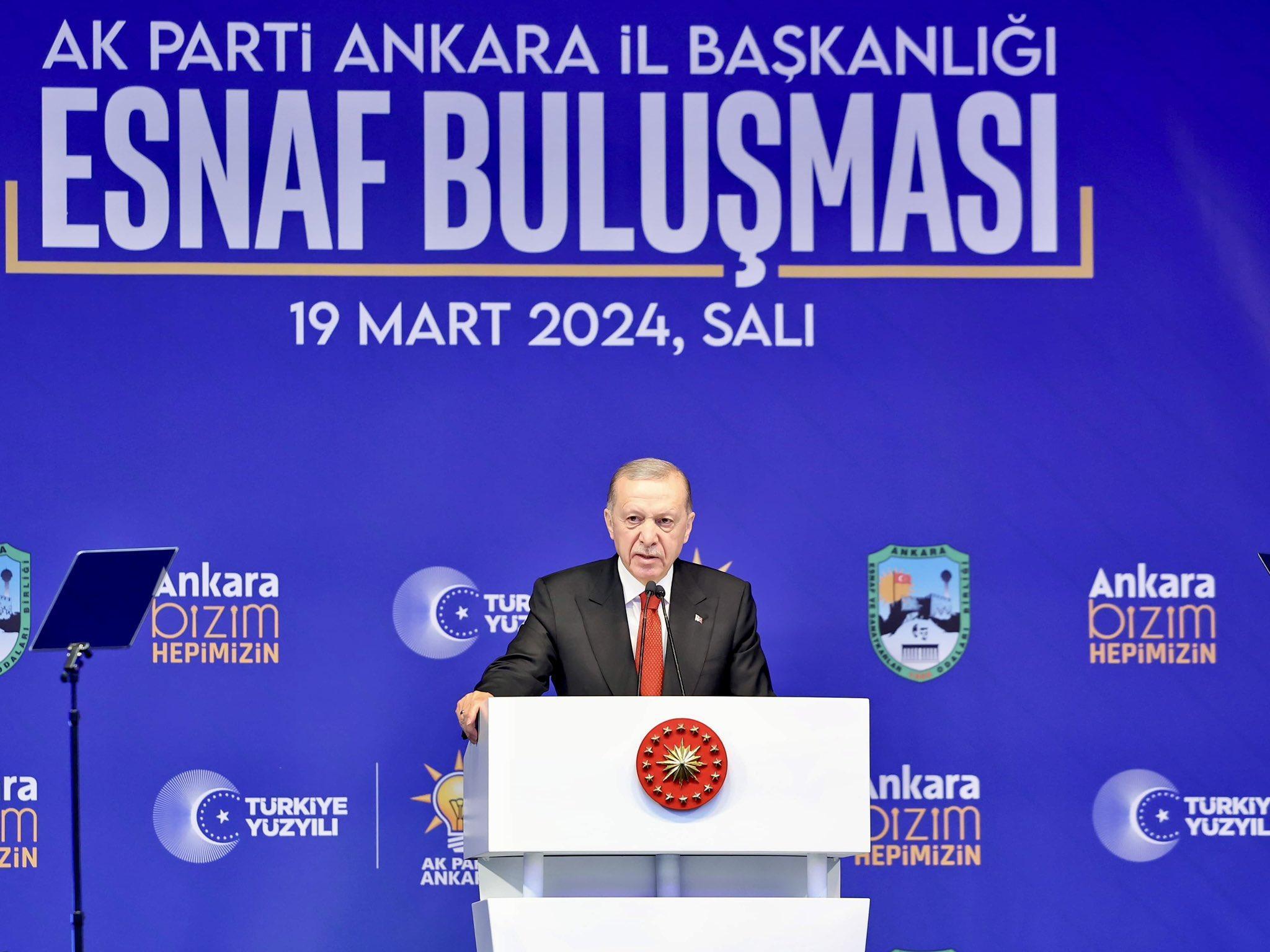 Erdoğan, eser ve hizmet siyaseti yolunda emin adımlarla yürüdüklerini belirterek, "Asfalt dökmemekle, yol-köprü yapmamakla, övünenlere hak ettikleri cevabı 31 Mart'ta vereceğinize inanıyorum. Ulaştırma projelerini devam ettirmek yerine üzerine hafriyat dökenleri siyaset arşivinin tozlu raflarına havale edeceğinizden şüphe duymuyorum. Kendi şahsi reklamlarına verdikleri önemi şehirlerimizin trafik ve deprem sorunlarına vermeyenleri sandığa gömmenizi bekliyorum. Biz büyükşehirde Turgut Altınok kardeşim ve ilçelerdeki adaylarımızla eser ve hizmet siyaseti yolunda emin adımlarla yürümeyi sürdüreceğiz. Cumhurbaşkanı olarak tüm belediye başkanlarımızla el ele verecek ve başta İstanbul olmak üzere Ankara'mızı bir başkente yakışır şekilde hal almasını inşallah sağlayacağız. Rabbim yolunuzu açık, kazancınızı her daim bereketli eylesin diyorum.