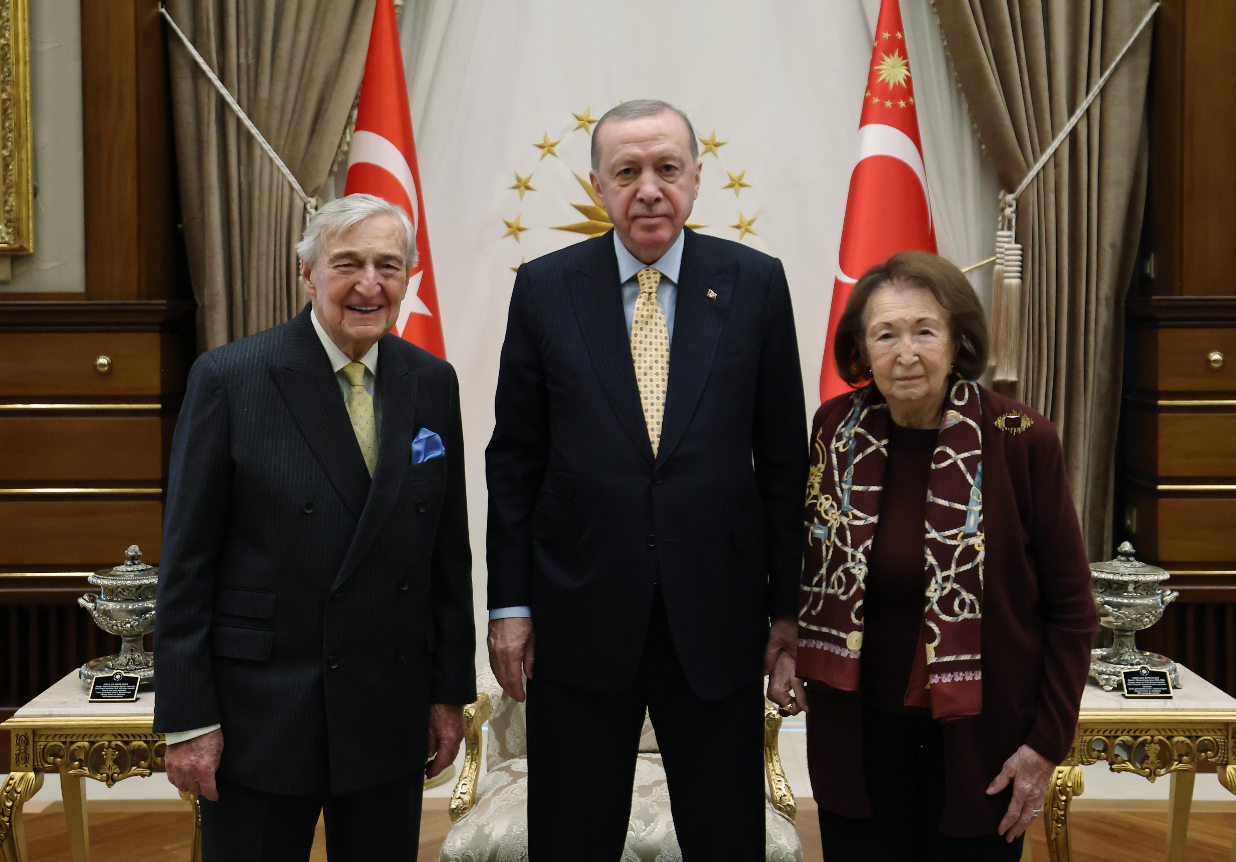 ANKARA, (DHA)- CUMHURBAŞKANI Erdoğan, Koç Holding Şeref Başkanı Rahmi Koç ile Vehbi Koç Vakfı Yönetim Kurulu Başkanı Semahat Arsel'i kabul etti.