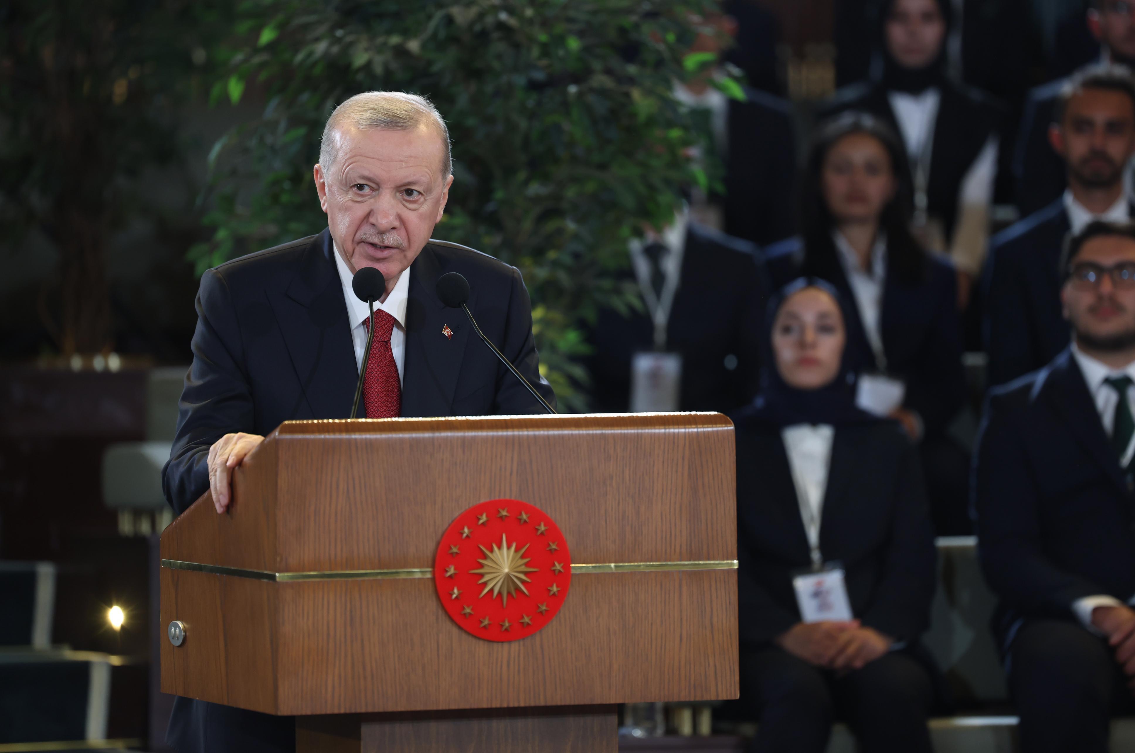 Farklı branşlarda başarıdan başarıya koşan millî sporcuların yanı sıra bilimde, sanatta, sivil toplumda ve teknolojide önemli başarıları imza atan Türkiye temsilcisi gençler ile beraber olduğunu belirten Erdoğan, “Evvela elde ettiğiniz başarılardan ötürü sizleri can‑ı gönülden tebrik ediyor, başarılarınızın inşallah daim olmasını diliyorum. Ülkemize yaşattığınız sevinçler için hepinize ayrı ayrı teşekkür ediyorum. Sizleri yetiştiren anne‑babalarınıza, hoca ve eğitmenlerinize buradan ayrıca şükranlarımı iletiyorum; hepsine sağlıklı ve huzurlu ömürler diliyorum. Siz kıymetli arkadaşlarımın nezdinde, yarınlarımızın mimarı, geleceğimizin teminatı, Türkiye Yüzyılı’nın mihmandarı olan tüm gençlerimizle gurur duyduğumuzu özellikle ifade etmek istiyorum” dedi.