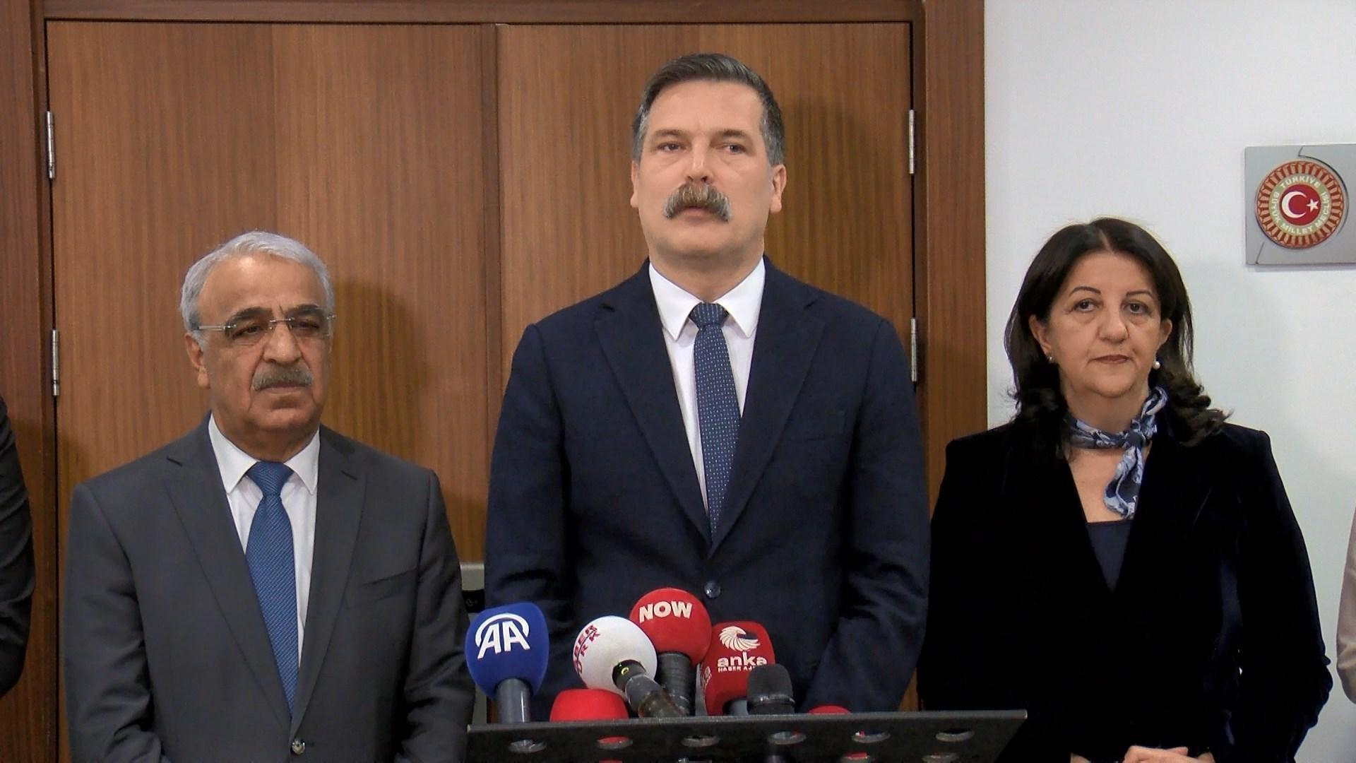 DEM Parti heyeti, TBMM'de AK Parti grubunun ardından Türkiye İşçi Partisi (TİP) Genel Başkanı Erkan Baş ve TİP’li milletvekillerini ziyaret etti. Erkan Baş ve İstanbul milletvekilleri Ahmet Şık ile Sera Kadıgil heyeti kapıda karşıladı. Basına kapalı yapılan görüşme yaklaşık 1 saat sürdü.