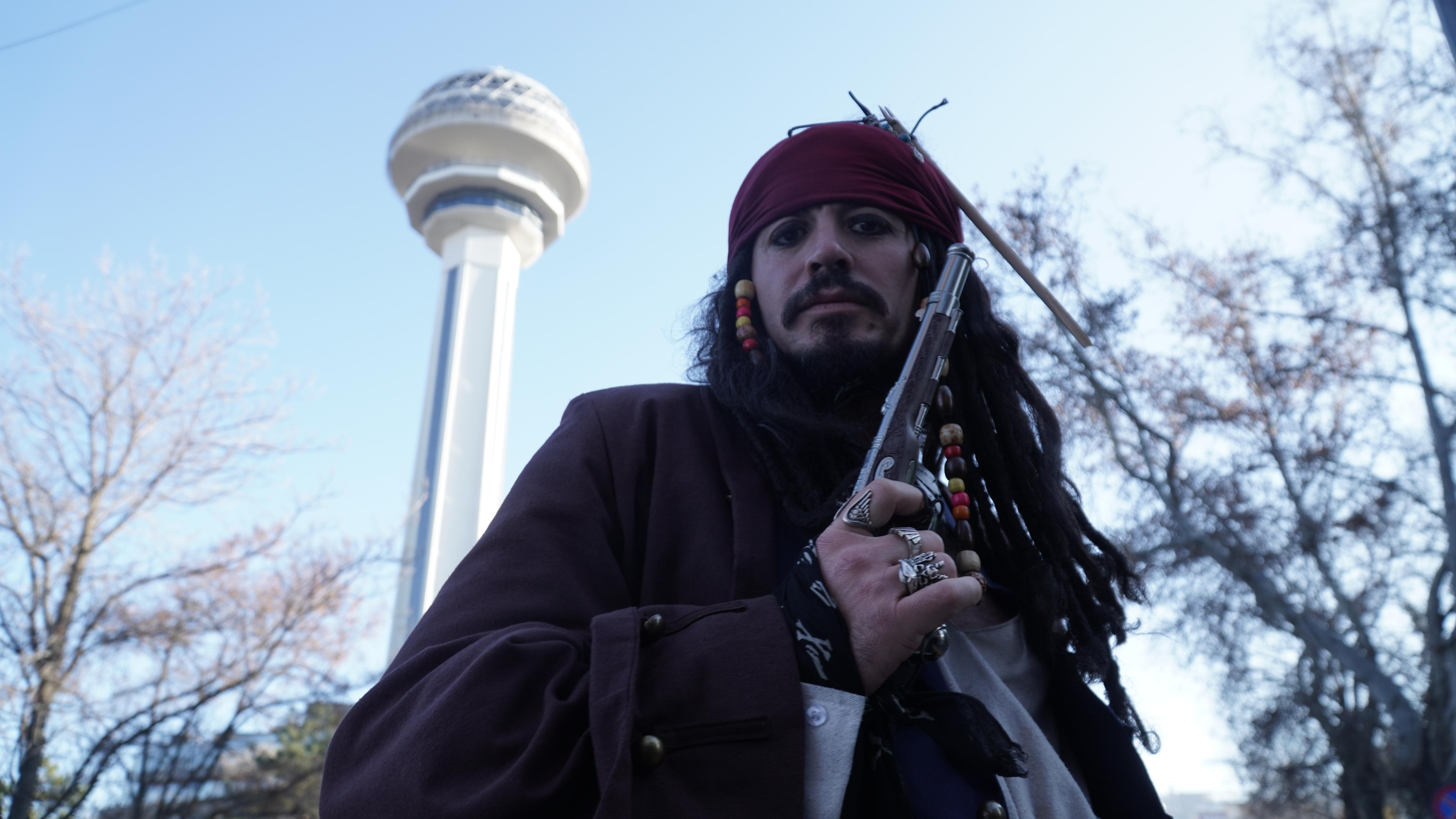 CNC makine ustası Ersin Tarhan, izin günlerinde Karayip Korsanları filminin baş karakteri Jack Sparrow'un kostümüyle başkent sokaklarında geziyor. Johnny Depp'in canlandırdığı ünlü korsan karakterine benzerliğiyle dikkat çeken Tarhan, kentin simge yerleri Kızılay'da yürüyüp, caddelerde dolaşıyor. Tarhan, saçı, makyajı ve kostümüyle ilgi odağı oldu. Tarhan'ın, metroya binerken çekilen görüntüleri sosyal medyada da ilgiyle izlendi.