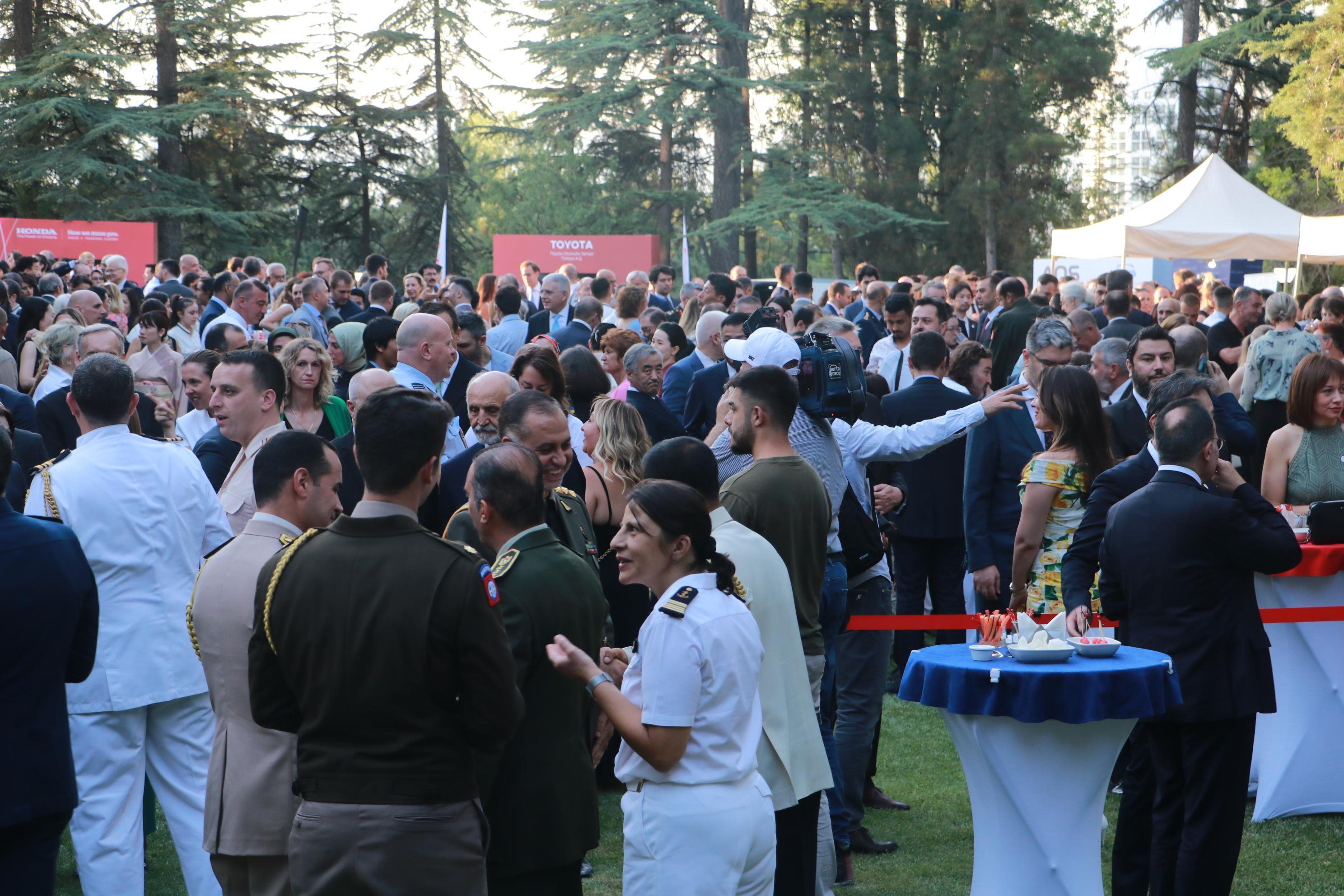 Japonya Büyükelçisi Katsuma Takahiko ise “Japonya, savunma kapasitesini ciddi bir şekilde güçlendirmenin yani sıra; Japonya-ABD ittifakını kuvvetlendirmek ve G7 ile Japonya, ABD, Avustralya ve Hindistan ortaklığından oluşan QUAD basta olmak üzere diğer müttefiklerle işbirliğini güçlendirmek suretiyle, uluslararası toplumun barışı ve güvenliği için katkı sağlamaya devam edecektir. Ciddi koşullar altında olan Ukrayna ve Gazze'deki durumlar konusunda; Japonya, Türkiye dahil olmak üzere ilgili ülkeler ile yakın iş birliği yaparak diplomatik gayreti aktif bir şekilde göstermeyi sürdürecektir. Japonya-Türkiye ilişkilerine baktığımızda, bu sene iki ülke arasındaki diplomatik ilişkilerin tesisinin 100. yıl dönümü. Bu vesile ile iki ülkede çeşitli anma etkinlikleri gerçekleştirmekteyiz. Ağustos ayında Japonya Deniz Öz Savunma Kuvvetleri'nin Eğitim Filosunun, 15 yıl aradan sonra 8'inci kez İstanbul’a uğraması planlanmaktadır. Japonya Büyükelçiliği, atalarımız tarafından tesis edilen iki ülke arasındaki derin dostluk ilişkilerini her alanda daha da geliştirmek ve gelecek 100 yıla taşımak için var gücüyle çaba sarf edecektir” ifadelerini kullandı. (DHA)