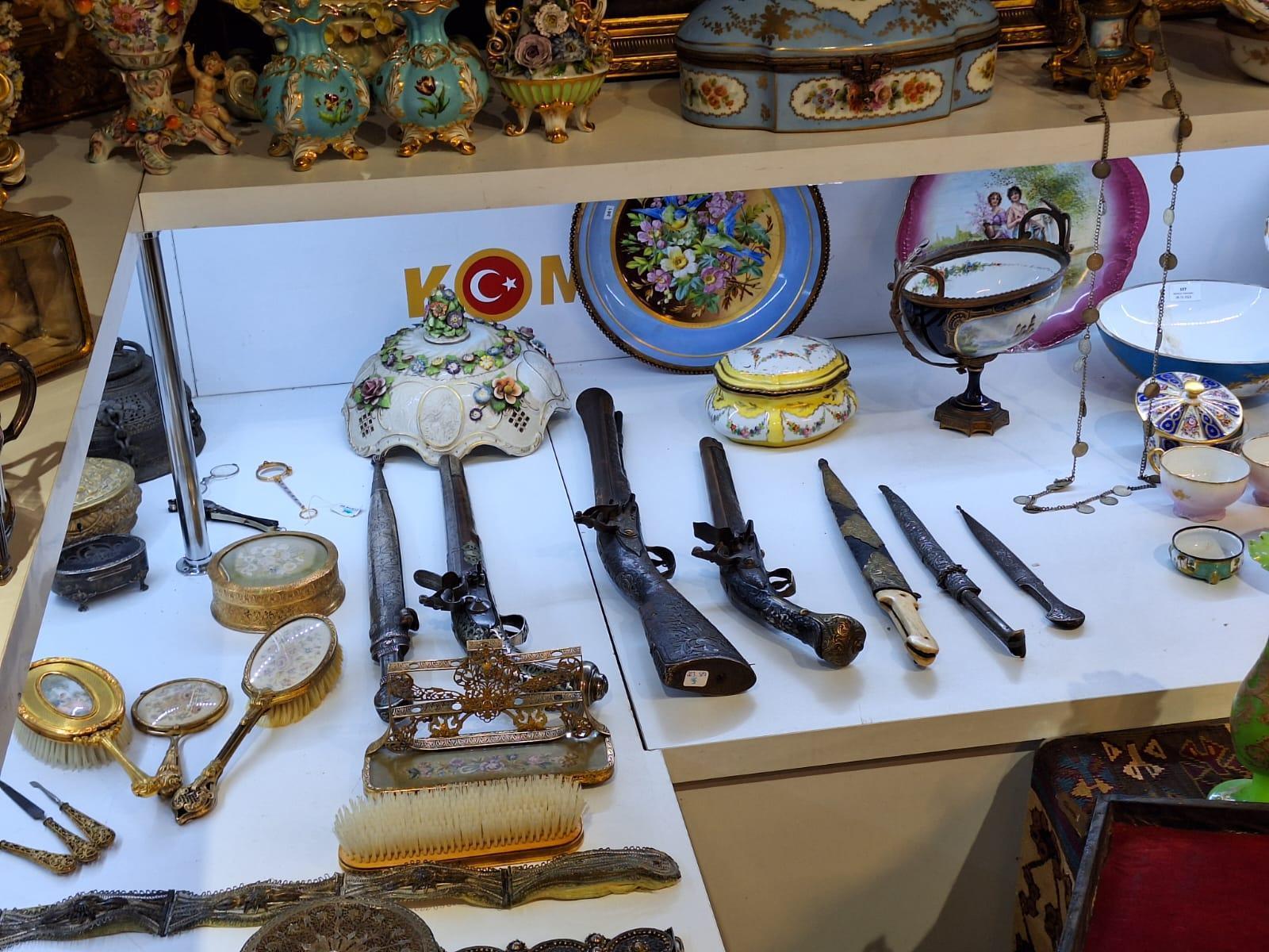17 adet 19'uncu yüzyıl Fransız yapımı sevres şömine saati ve köstekli saat. 6 adet Avrupa yapımı altın renkli kabartma figürleri bulunan çerçeveye sahip yağlı boya ve kanvas tablo. 5 adet 18 ve 19'uncu yüzyıl Osmanlı sanatına ait gümüş, bronz bel kemeri. 1 gelin başlığı, 3 gümüş kınılı kama, 1 hançer. 3 adet 19'uncu yüzyıl Osmanlı sanatına ait piştov ve barut hazneli silah. 6 adet 18 ve 19'uncu yüzyıl Osmanlı eseri kilim ve örtü tekstil ürünü. 1 adet Osmanlı yapımı 18 ve 19'uncu yüzyıla ilişkin işlemeli bakır vazo. 1 adet 19'uncu yüzyıl Avrupa eseri işlemeli bakır vazo. 5 adet Napoleon Bonaparte dönemi Fransız boulle kutulu likör takımı, 3 adet Osmanlı Devleti’nin son dönemlerine ait sedef işlemeli sandık. 1 adet 19'uncu yüzyıla ait tahta ve kemik elemanlarından oluşan çıkrık. 4 adet Fransız yapımı ahşap gümüşlük ve köşe vitrini. 1 adet 19'uncu yüzyıla ait bronz aksamlı duvar tipi sekreter masası. 4 adet 19'uncu yüzyıl Fransız yapımı okuma ve opera gözlüğü. Fransız yapımı porselen ve gümüş fincan takımları, sürahiler, çatal-bıçak takımı, süs eşyaları, vazolar, şamdanlar ve tepsiler.