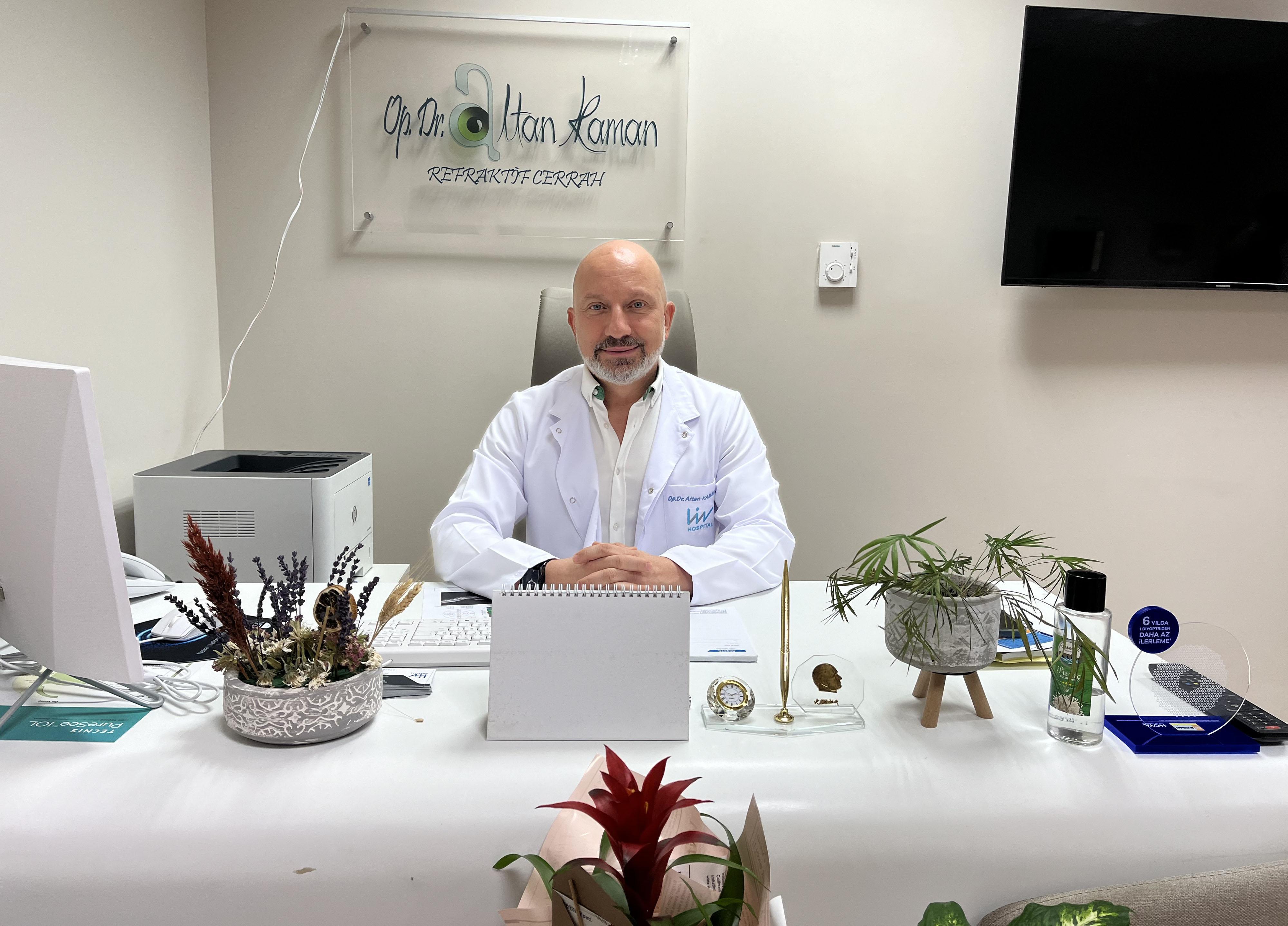 Op. Dr. Kaman, keratokonusun belirtileri ile ilgili, “İlk baştaki aşamalarda sık sık batma, çocukların sık sık gözünü ovalaması, kaşıntı, hissi ile başlar. Daha sonra ilerlediği zaman ışıklarda dağılmalar, özellikle parlak ışıklarda dağılmalar net görememe, ışıkları dağınık görme gibi şikayetler başlar. Muayenelerde de bazen atlanabiliyor keratokonus normal göz muayenelerinde de atlanabiliyor. Eğer bir kişi gözlükle de tam net göremiyorsa, özellikle 10-15 yaşında bir çocuk olabilir bu, ölçümlerde astigmatı var ama gözlük takmasına rağmen net göremiyorsa mutlaka bu tür çocuklarda bir keratokonus yani göz bebeğinin sivrileşmesi var mı, yok mu detaylı muayenelerle taraması gerekmektedir. Genelde 10 yaşından sonra başlar. 10 ile 25 yaş aralığında hızlı ilerler. 25’ten sonra ilerleme hızı yavaşlar. 30’lu yaşın ortasına kadar da yine ilerlemeye devam edebilmektedir. Ama bu dediğim gibi kişinin bünyesine, göz bebeğinin gücüne göre herkeste aynı seyretmez. Kimilerinde çok yavaş seyredebilir. Tuttuğu yere göre kimilerinde görme kusurunu algılatabilir. Görme kusuru fazla bir şekilde hasar bırakabilir. Bunlar tamamen kişinin göz yapısına göre değişebilir. Ama genellikle 10 ile 15 yaşında başlar. 30’lu yaşların ortasına kadar ilerler” dedi.