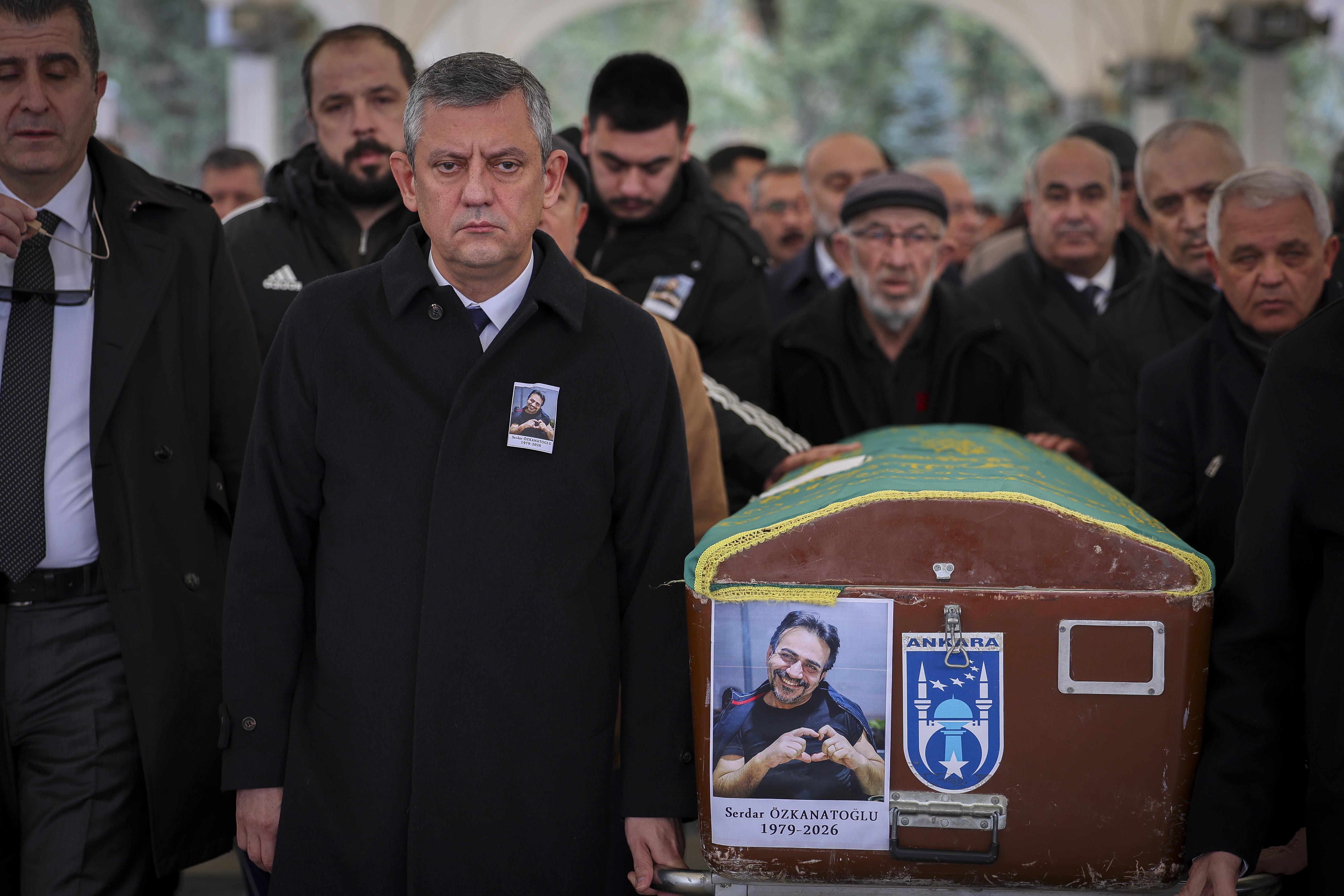 CHP Ankara Milletvekili Umut Akdoğan'ın bir dönem danışmanlığını yapan Serdar Özkanatoğlu'nun cenazesi, otopsi işlemlerinin ardından ailesi tarafından teslim alınıp, Mamak Ortaköy Camisi'ne getirildi. CHP personeli Özkanatoğlu'nun cenazesine CHP Genel Başkanı Özgür Özel, Özkanatoğlu’nun ailesi, partililer ile çok sayıda kişi katıldı. Serdar Özkanatoğlu, öğle vakti kılınan cenaze namazının ardından Ortaköy Mezarlığı'nda toprağa verildi. (DHA)