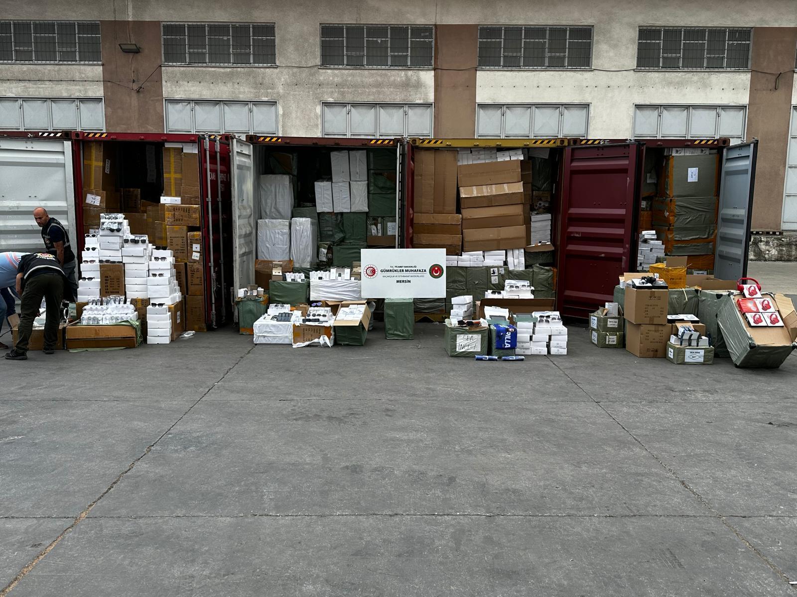 Bakanlıktan yapılan açıklamaya göre; Mersin'de kaçakçılıkla mücadele kapsamında yürütülen risk analizi ve istihbarat çalışmaları sonucu şüpheli görülen 4 konteyner mercek altına alındı. Gümrük Muhafaza ekiplerinin takibinde bulunan firmaya ait işlemlerin incelenmesi sonucu X-Ray taramasına yönlendirilen konteynerlerde şüpheli yoğunluk tespit edildi. Detaylı arama neticesinde konteynerler içerisinde bildirilen eşyadan farklı olarak 632 milyon Türk lirası değerinde 81 ton muhtelif eşya tespit edildi.