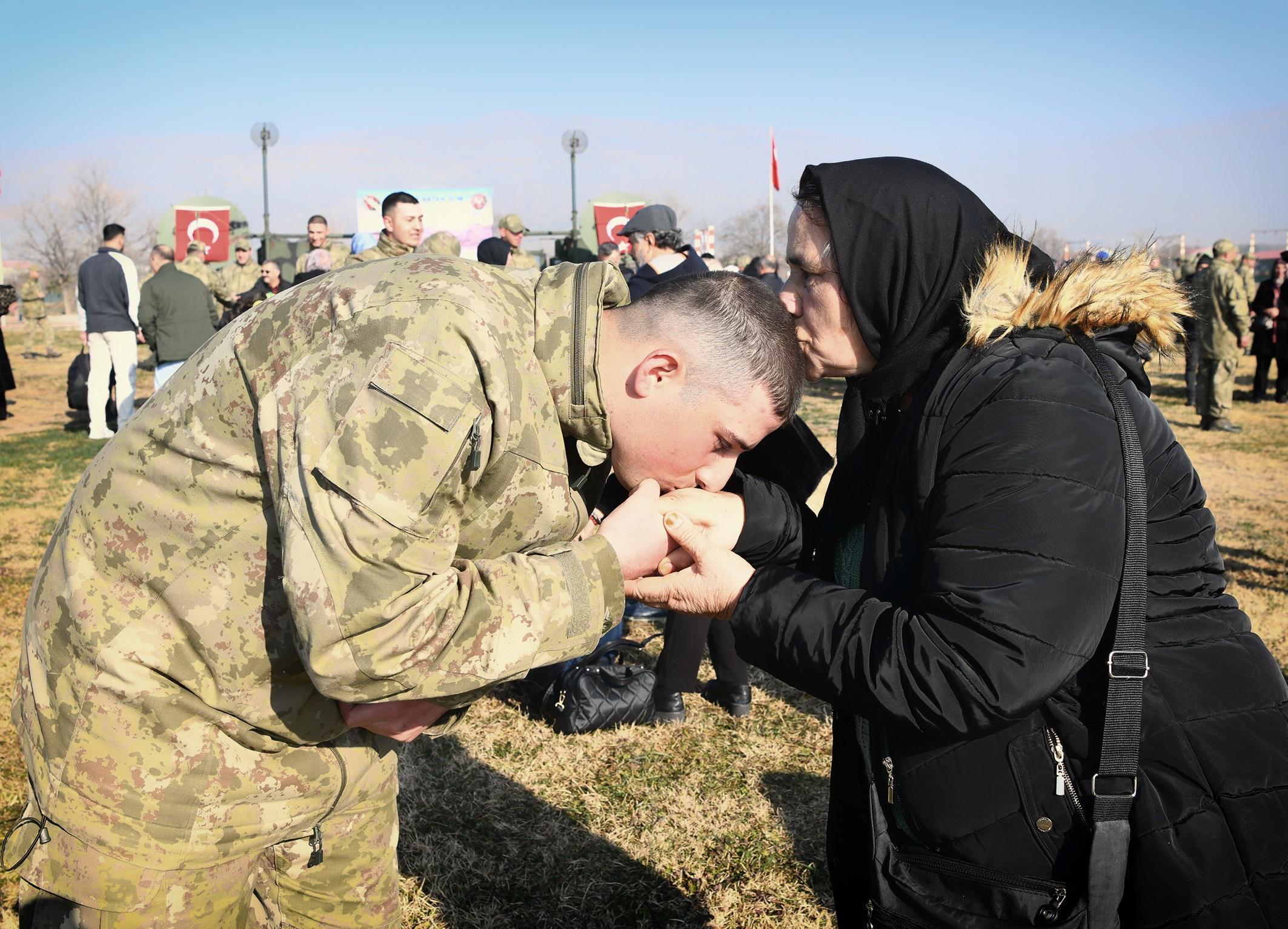 MSB'nin sanal medya hesabından bir anne ile asker oğlunun fotoğrafı, 'günün fotoğrafı' olarak paylaşıldı. Annenin, eğilip elini öpen asker oğlunun aynı şekilde başından öperken çekilen fotoğrafı, 'Vatanın yılmaz gücüdür ana duası' notuyla paylaşıldı. (DHA)