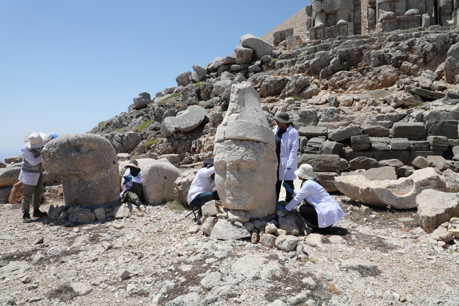 Doğu terasında yer alan Apollon heykelinin başlık kısmındaki, geçmişte farklı gruplar tarafından yapıştırılmış ve sonrasında ayrılmış olan parça, bu kez kalıcı şekilde birleştirildi. Böylece Nemrut’un simge eserlerinden biri yeniden bütünlüğüne kavuştu. Nemrut Dağı Tümülüsü'nün dev heykelleri için planlanan sağlamlaştırma projesi, beş yıllık bir yol haritasıyla ilerleyecek. Bakanlığın 2022 yılında başlattığı deneme çalışmaları ve 2023-2024 yıllarındaki kontrollerin ardından, bu yaz başlayan uygulamalar Nemrut'un geleceğini güvence altına alacak. (DHA)