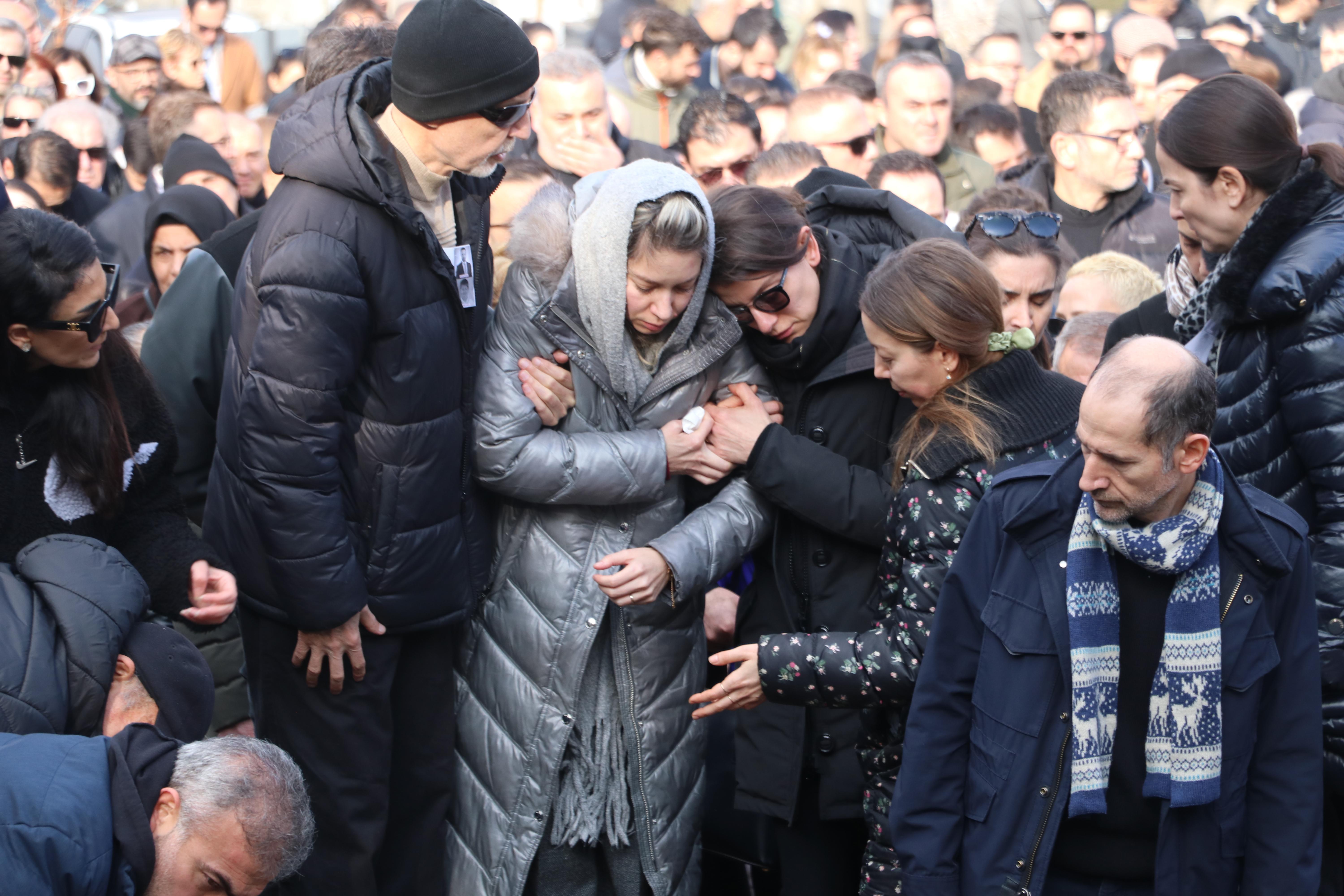 Törenin ardından Can ve Atıl Enis Tokcan kardeşler ile çocukları Karşıyaka Mezarlığı'nda gözyaşları arasında toprağa verildi. (DHA)