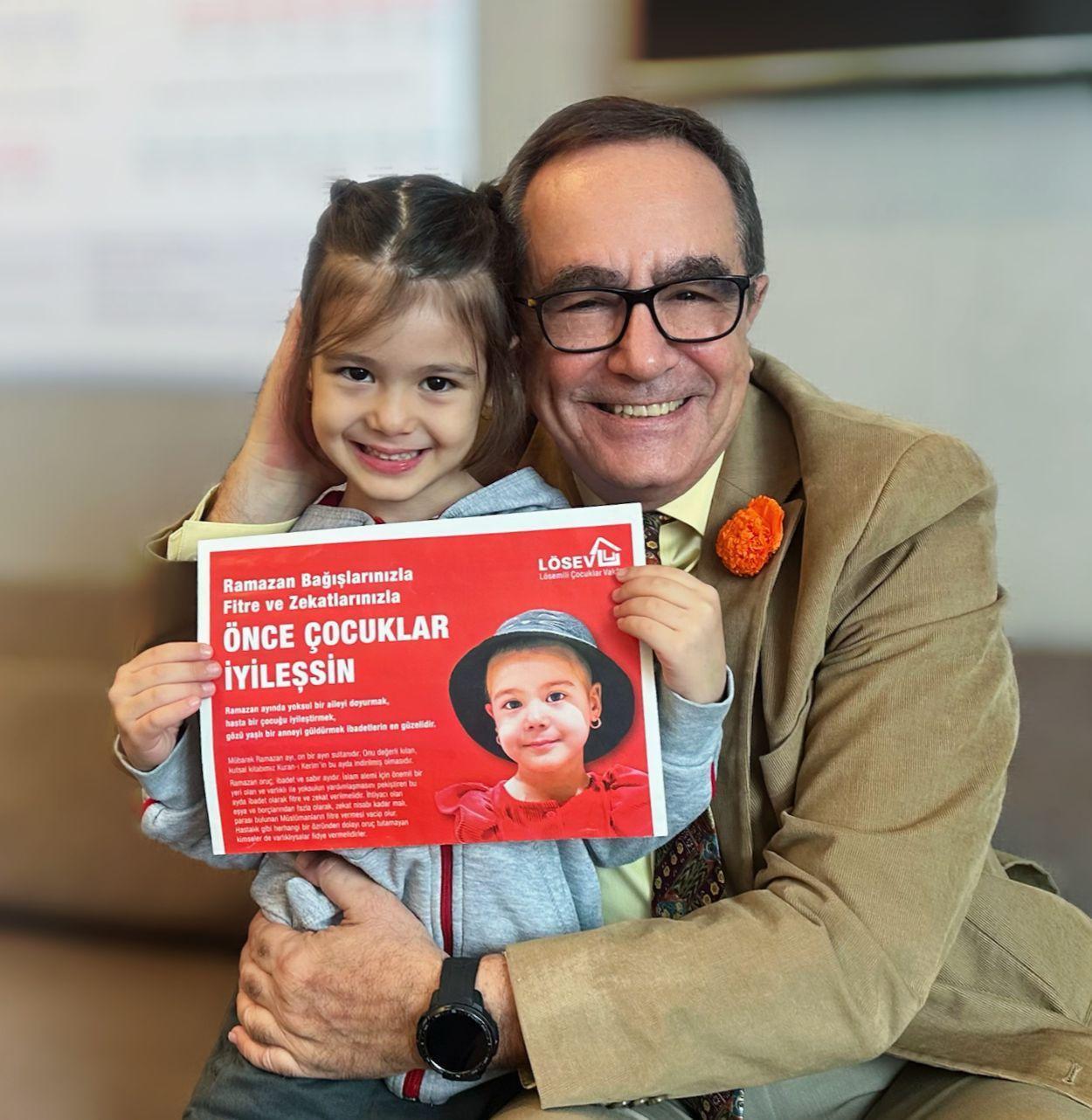 Ruken KADIOĞLU-Muhammet BAYRAM/ANKARA, (DHA)- ANKARA'da Sümeyye Sena Gökmen (6), Lösemili Çocuklar Vakfı'na (LÖSEV) ait LÖSANTE Hastanesi'nde 1,5 yıl süren tedaviyle lösemiyi yendi. LÖSEV kurucusu Dr. Üstün Özer, geçen yıl LÖSEV'in ramazan dergisinin kapağında saçsız fotoğrafı kullanılan Sümeyye ile çekilen fotoğrafını sanal medyada paylaşıp, "Sümeyye, lösemi canavarını yendi" dedi.