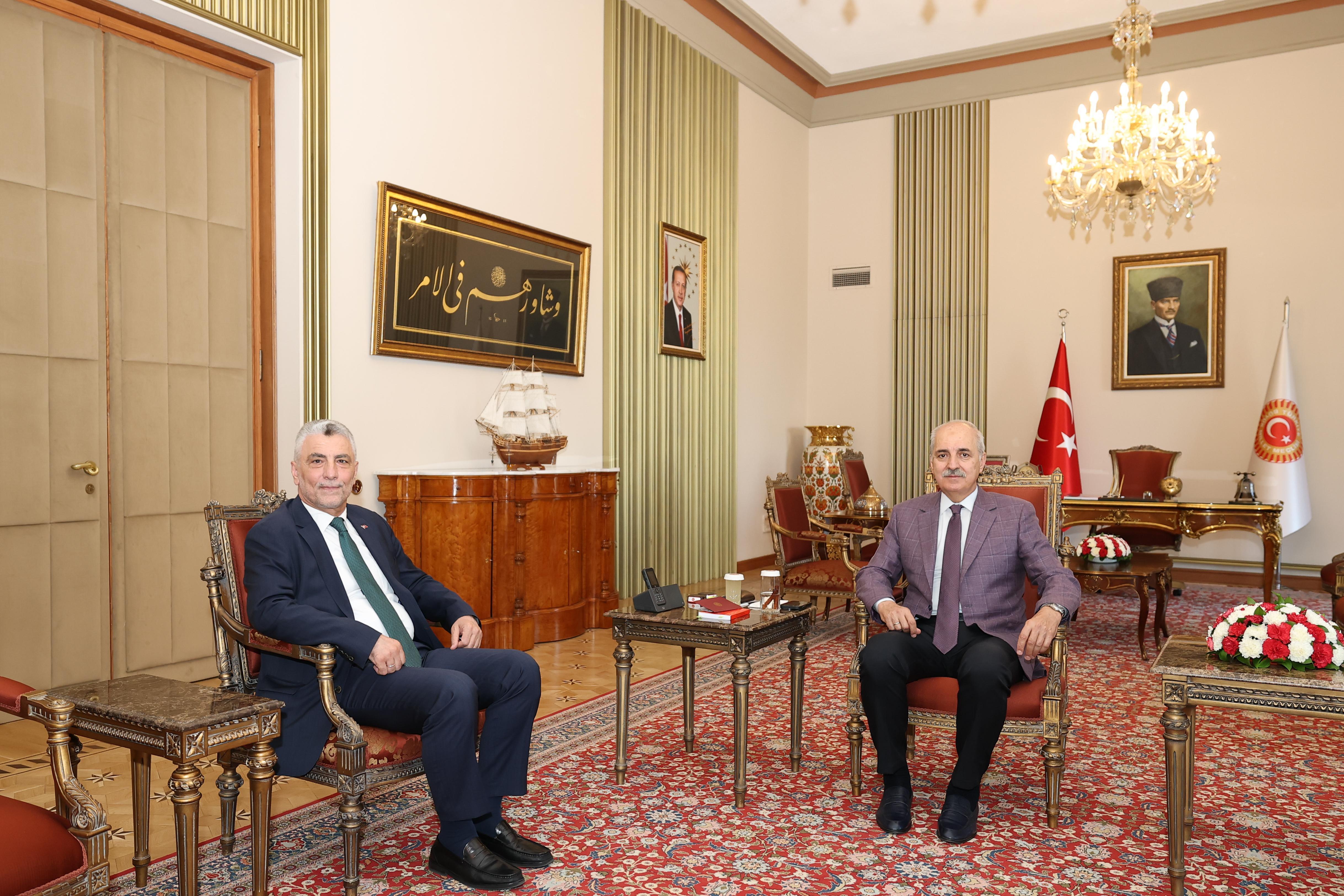 Aliekber METE/ANKARA, (DHA)- TÜRKİYE Büyük Millet Meclisi (TBMM) Başkanı Numan Kurtulmuş, Ticaret Bakanı Ömer Bolat'ı kabul etti.