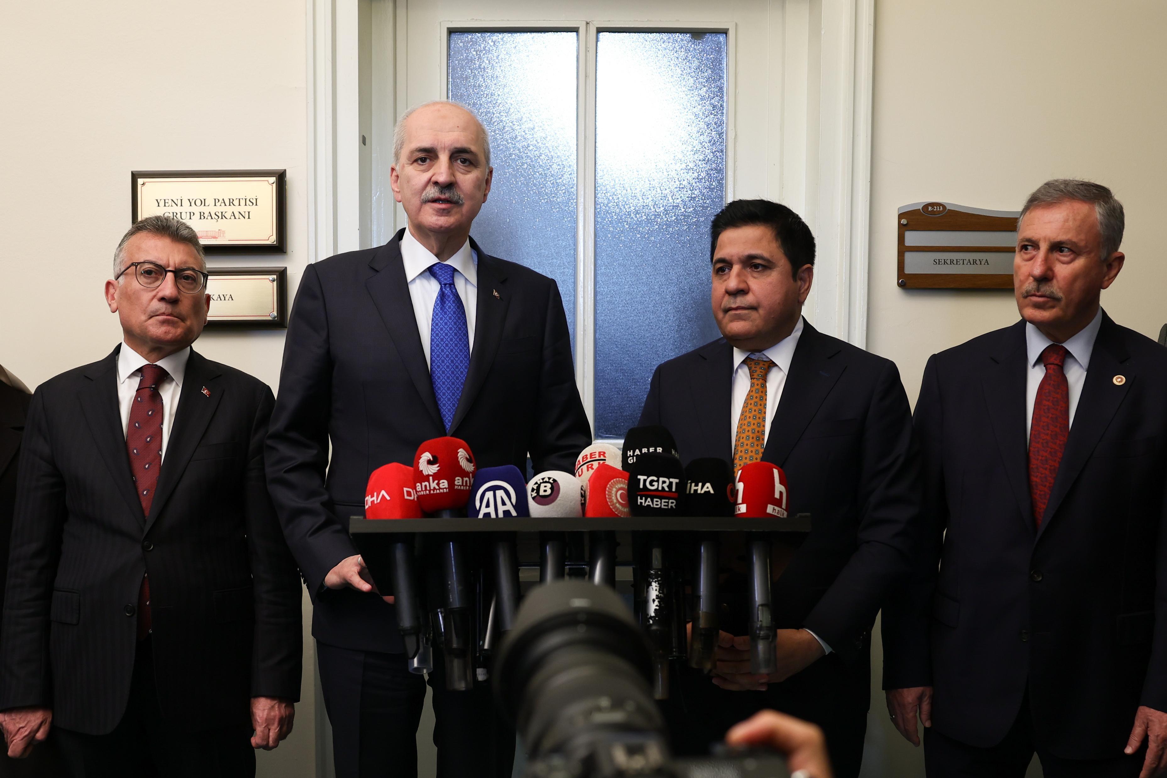 TBMM Başkanı Numan Kurtulmuş ise görüşmenin faydalı ve verimli geçtiğini kaydederek, "Ümit ederim ki 'Terörsüz Türkiye' adı verilen bu süreç büyük bir olgunlukla ve titizlikle TBMM çatısının altında bulunan tüm partilerin elini taşın altına koyarak destek verdiği bir noktaya gelsin. Bunun için de sürecin şeffaf bir şekilde yürütülmesi ve TBMM'de milletimizin oylarını temsil eden bütün siyasi partilerin süreçle ilgili fikirlerinin karşılıklı müzakere edilerek ve atılacak her türlü adımın da olgunlaştırılarak atılması konusunda bir tutum benzerliğine sahip olduğumuzu gördüm. Hakikaten bu süreç, tarihi bir süreçtir. 100 yıllık Cumhuriyet tarihimizin 50 yılını çalıp götürmüş, Türkiye'nin ayaklarına bir büyük pranga gibi vurulmuş olan terör belasından bahsediyoruz. Bu 50 yıl içerisinde fevkalade büyük kayıplara uğradık. Memleketin nice evlatları şehit düştü, nice evlatları genç yaşta hayatlarını kaybetti ama Türkiye'nin kalkınma, ilerleme ve güçlenme yarışında terör nedeniyle sadece 50 yılını kaybetmedi, bir asır geriye götürüldü. Dolayısıyla bunun artık Türkiye gündeminden kaldırılması, bir daha hiçbir şekilde hiçbir terör örgütünün Türkiye’de faaliyet göstermeyeceği bir ortamın oluşturulması için birliğin, beraberliğin, kardeşliğin kalıcı bir şekilde bu topraklarda zaten bin yıldır kardeş olarak yaşayan, bütün unsurlarıyla birlikte milletimizin barış içerisinde yaşayacağı bir dönemin adımlarının atılması siyasi iradeye bağlıdır. Milletin siyasi iradesinin tecelli ettiği TBMM'de yapılacak çalışmaların da fevkalade önemli olduğunu biliyoruz" diye konuştu. (DHA)