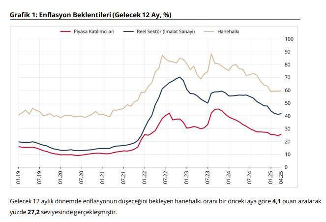 Caner ÜNVER/ANKARA, (DHA)- TÜRKİYE Cumhuriyet Merkez Bankası (TCMB), nisan ayında 12 ay sonrası enflasyon beklentilerinin piyasa katılımcıları ve reel sektör için arttığını, hanehalkı içinse değişmediğini açıkladı.