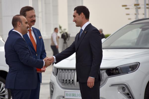 Azerbaycan ve Kazakistan'a teslim edilen Togg'un yeni varış noktası, Türkmenistan oldu. Sanayi ve Teknoloji Bakanı Mehmet Fatih Kacır, Türkiye Odalar ve Borsalar Birliği ve Togg Yönetim Kurulu Başkanı Rifat Hisarcıklıoğlu ile 2 adet beyaz renkli Togg'u Türkmenistan Devlet Başkanı Serdar Berdimuhamedov'a, 'Arkadağ Akıllı Şehri'nin açılış töreninde teslim etti. Berdimuhamedov, Togg'u test ederek, çok beğendiğini söyledi. Atlı birliklerin katılımıyla gerçekleştirilen korteje Togg'lar da katıldı. Türkmenistan gelenekleri gereği yöresel kıyafetli kadınlar, Togg'ların nazardan korunması için üzerlik otu tütsüsünü araçların çevresinde gezdirdi. Deve yününden yapılan 'Alaca' isimli nazarlık da Togg'ların direksiyonuna bağlandı. Ayrıca, bereket getirmesi için de üzerine un serpildi.