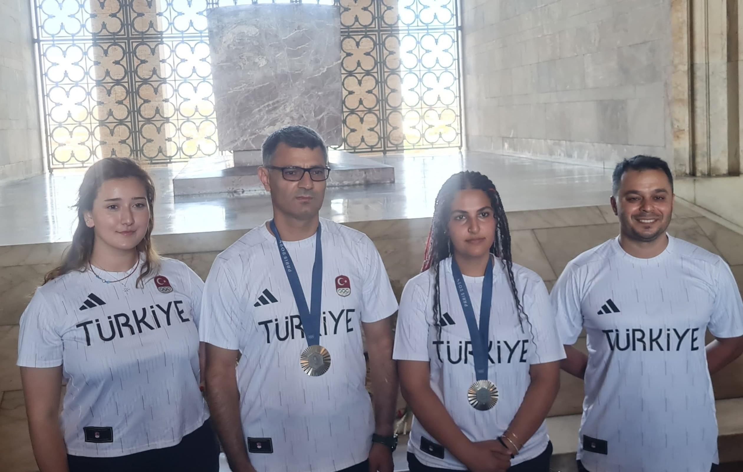 Türkiye Atıcılık Federasyonu Başkanı Gürsel Çolakoğlu, Paris 2024 Olimpiyat Oyunları'nda mücadele eden milli sporcularla birlikte Anıtkabir’i ziyaret gerçekleştirdi. Paris 2024'te atıcılık branşında Türkiye tarihinde ilk defa gümüş madalya kazanan Yusuf Dikeç ile Şevval İlayda Tarhan, İsmail Keleş ve Şimal Yılmaz'ın yanı sıra antrenörler Osman Erdinç Bilgili ve Alper Yılmaz ziyaretçi heyetine eşlik etti. Aslanlı Yol'dan yürüyerek Atatürk'ün mozolesine ulaşan sporcular Anıtkabir merdivenlerinde hatıra fotoğrafı çektirdi. Milli atıcılar, ziyaret sırasında vatandaşlardan yoğun ilgi gördü.