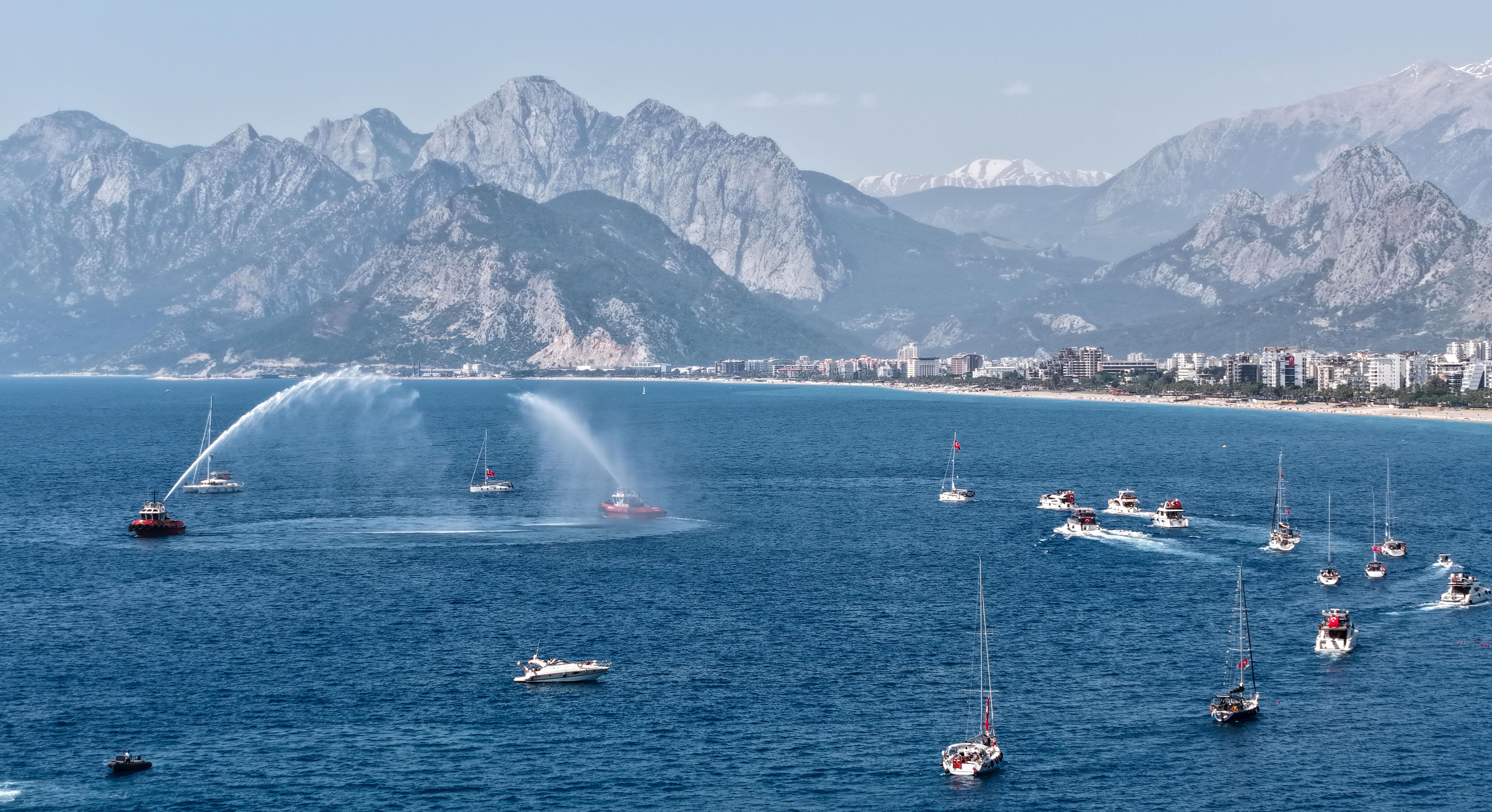 Sahil Güvenlik botları, Deniz Polisi botu, çok sayıda tekne ve jet ski eşliğinde düzenlenen kortejde çocuklar, bayram coşkusunu denizde yaşadı. Yaklaşık 50 teknenin yer aldığı kortej, müzikler ve gösteriler eşliğinde Setur Marina'dan hareket ederek Konyaaltı Sahili'ne kadar ilerledi. Kortej, Konyaaltı Sahili açıklarında gerçekleşti. Tekneler, bayraklar ve balonlarla süslenerek denizde bayram havası yaşandı. Kutlamalar kapsamında çocuklar için ayrıca flyboard gösterisi düzenlendi. Denizde düzenlenen etkinlikleri vatandaşlar da sahil boyunca ilgiyle izledi.