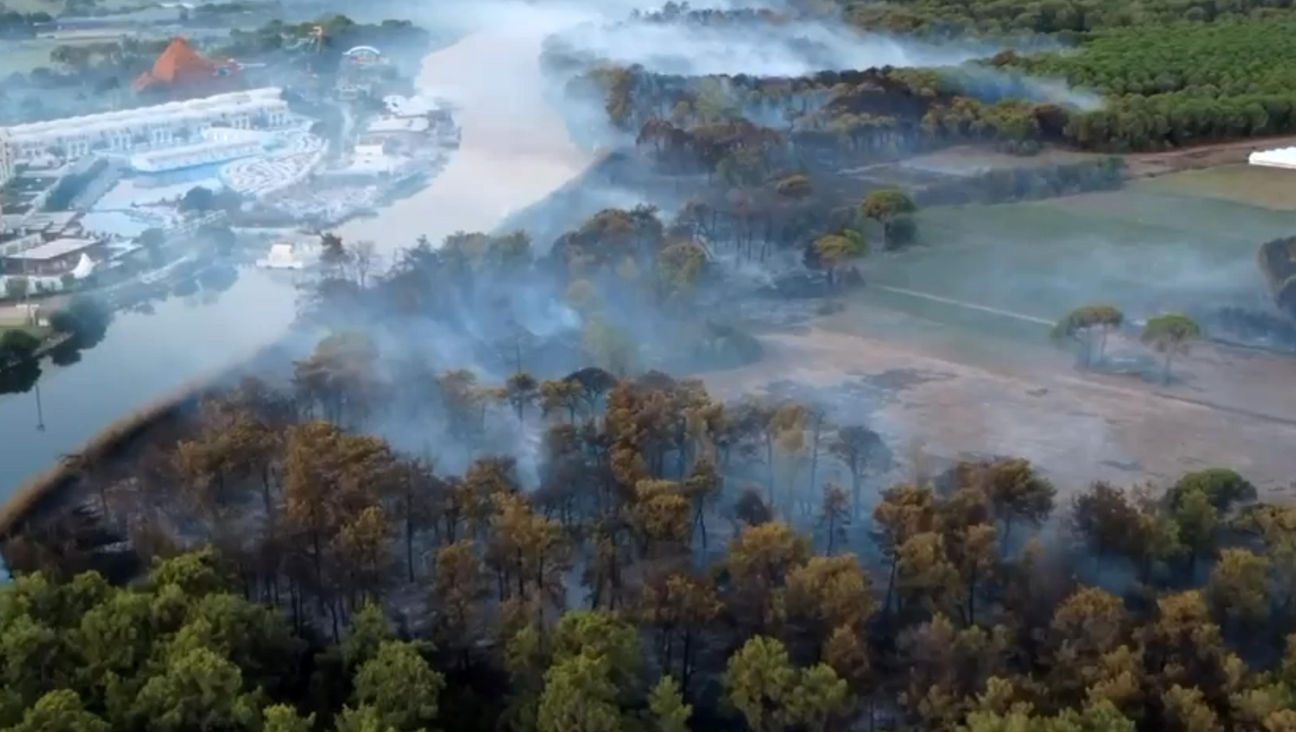 Namık Kemal KILINÇ/ANTALYA, (DHA)- ANTALYA'nın Aksu ilçesinde dün akşam çıkıp, gece saatlerinde söndürülen orman yangınının boyutu gündüz ortaya çıktı. Bölgenin yoğun dumanla kaplanmasına neden olan yangın nedeniyle tahliye edilen otelde, temizlik çalışmaları başlatıldı.