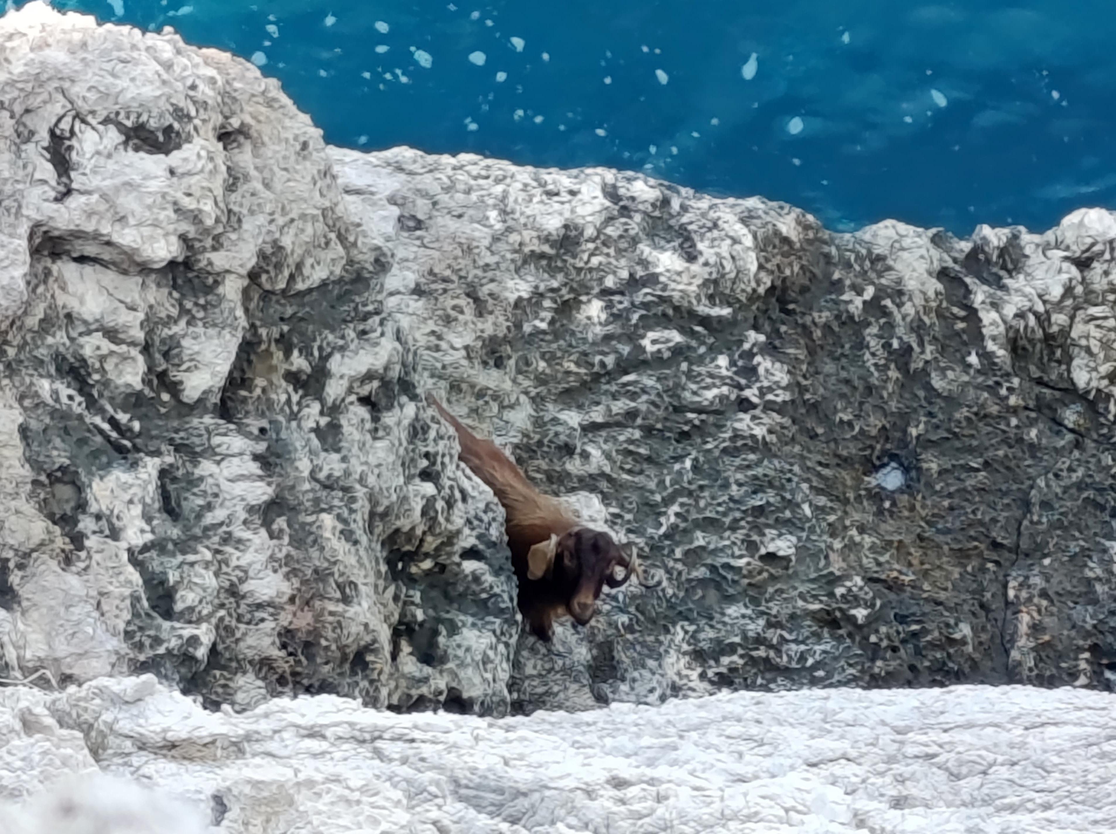Erkan UYSAL/ALANYA (Antalya), (DHA)- ANTALYA'da Alanya Kalesi'nin uç bölgesi olan Cilvarda Burnu'ndaki kayalıkta 3 gün mahsur kalan keçi, Sahil Güvenlik Bot Komutanlığı ekipleri tarafından kurtarıldı.