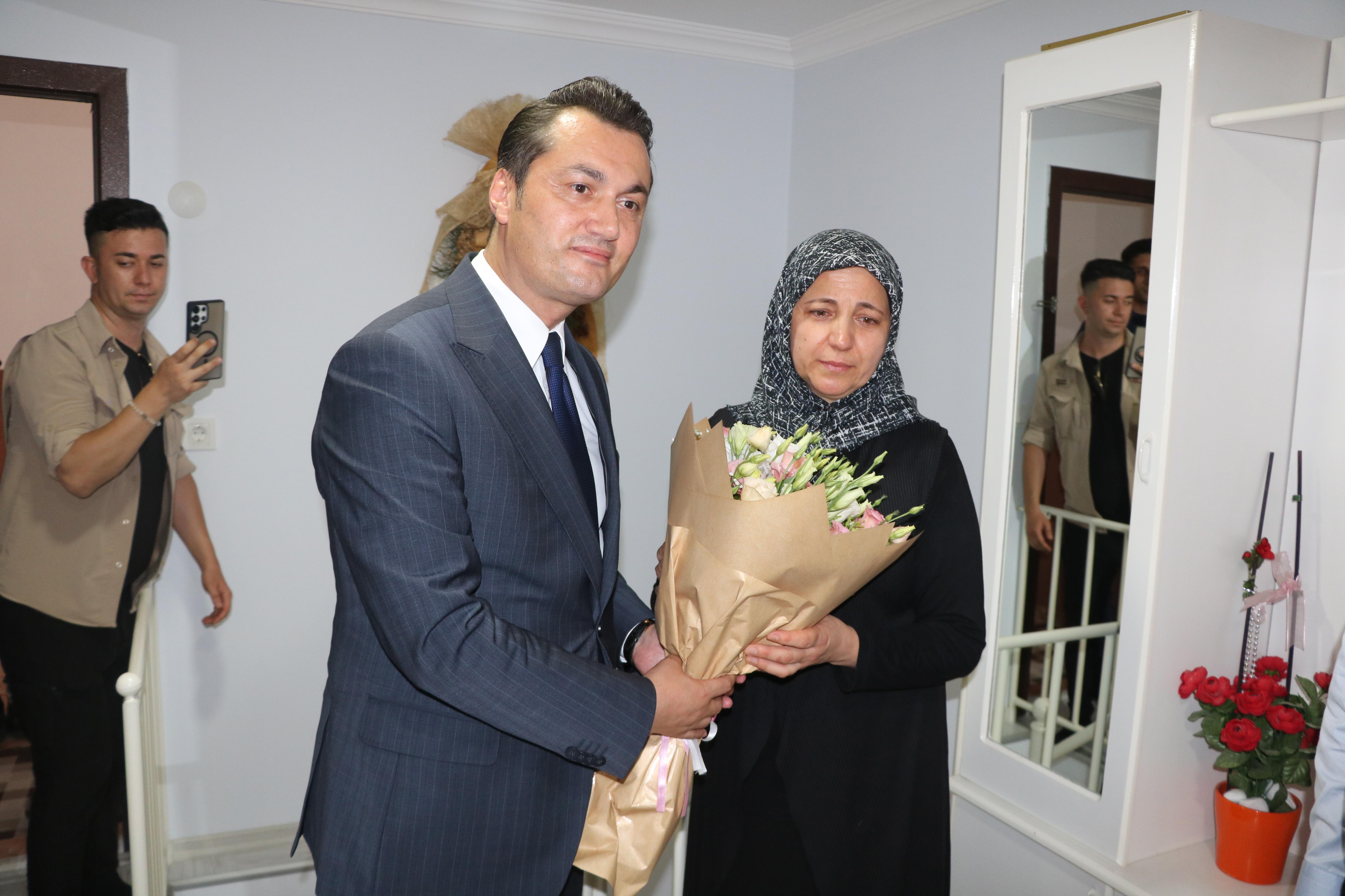 Ziyarette anne Sevcan Önder'e hitap eden Kaymakam Şakir Öner Öztürk, "Baş tacısınız. Türk milleti çok aziz bir millet. Güçlü bir millet. Birliği, beraberliği, kardeşliği her şeyin en üstünde tutan, bayrağı, milleti ve devleti için ölümü göze alabilen yeryüzündeki en nadir millet, Türk milleti. Nice şehitler verdik. Kıbrıs Harekatı'nda, terörle mücadelede ve birçok noktada ama hiçbir vatan evladımız bir adım geri atmadı. Hem rahmetli şehidimize, tüm şehitlerimize Allah'tan rahmet diliyoruz. Mekanları cennet olsun inşallah. Rabbim cennetinde buluştursun. Sizleri de ilk günümüzde ziyaret etmek istedim. Sizler bizim en yakınımızda olacak, inşallah eşim geldiğinde de ailecek ziyaret edeceğiz. Hep beraber olacağız. Sizlerin ne emri olursa, ne ihtiyacı olursa her zaman devletimizin sıcaklığını inşallah hissettirmeye çalışacağız. Zaten bizden önceki Kaymakam Fatih Bey de hep sizlerle beraberdi. İnşallah ondan devraldığımız bayrağı da aynı şekilde devam ettirmek nasip olur. Sizleri tanımaktan da çok mutlu oldum. Şeref duydum" diye konuştu. Şehit annesi Sevcan Önder de "Sağ olun. Bizler de öyle. Sizlerle buluştuk. Görüştük, tanıştık, nasip oldu. Öyle, böyle geçireceğiz zamanımızı" diye yanıt verdi. (DHA)