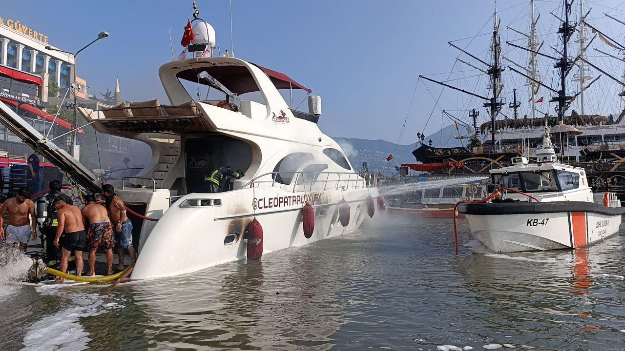 Erkan UYSAL/ALANYA, (DHA)- ANTALYA'nın Alanya ilçesinde balıkçı barınağına demirli lüks teknede çıkan yangın, karadan ve denizden 1 saatlik çalışmayla söndürüldü.