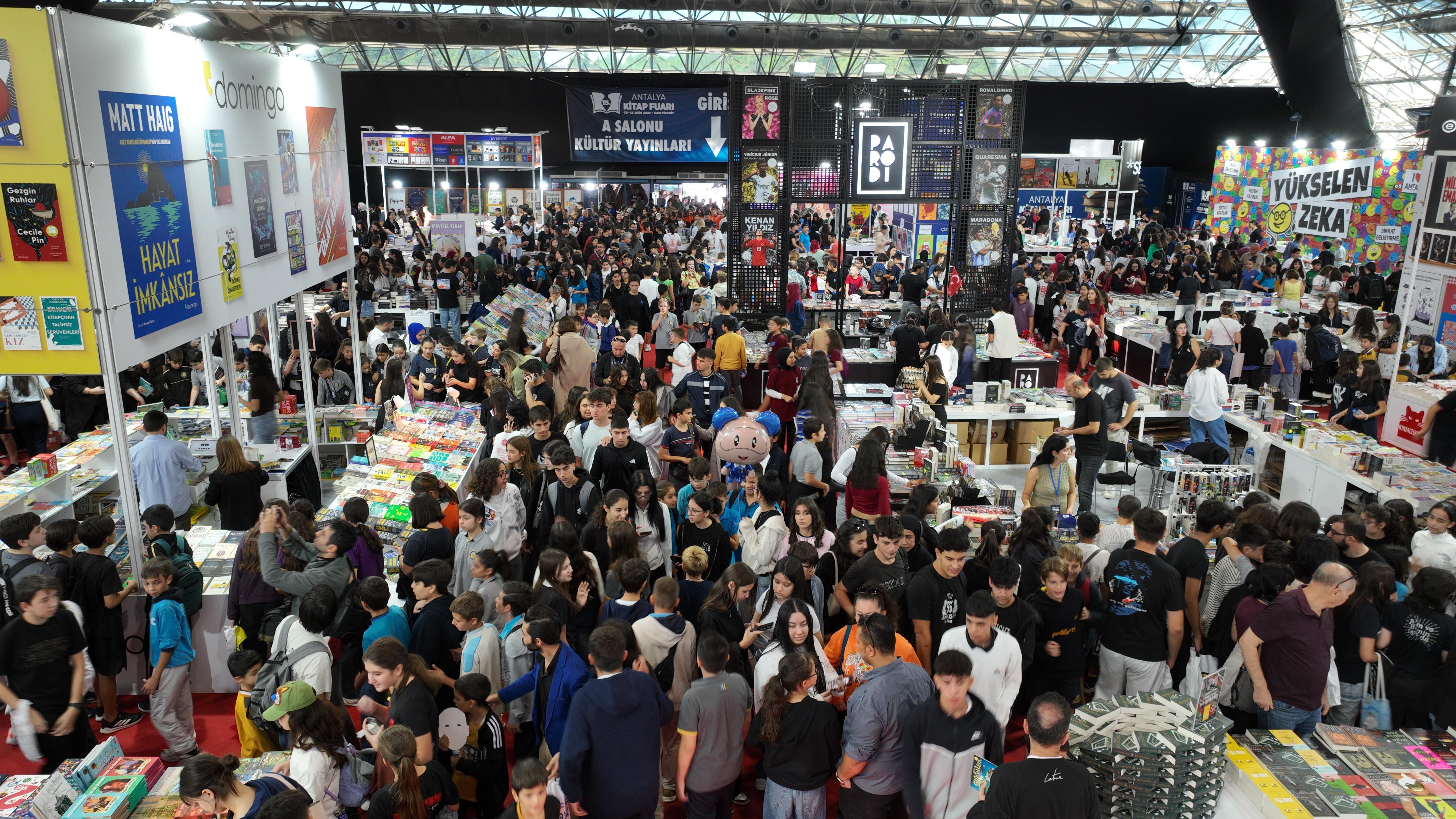 ANTALYA, (DHA) - ANTALYA Büyükşehir Belediyesi ev sahipliğinde bu yıl 15'incisi gerçekleştirilen Antalya Kitap Fuarı, bu yılı da rekor ziyaretçi sayısıyla tamamlandı. Başkan Vekili Büşra Özdemir, 15. Antalya Kitap Fuarı'nı 10 gün boyunca 1 milyon 103 bin 846 kitapseverin ziyaret ettiğini söyledi. Büşra Özdemir, 16'ncı Antalya Kitap Fuarı'nın ise 2-11 Ekim 2026 tarihleri arasında düzenleneceğini açıkladı.