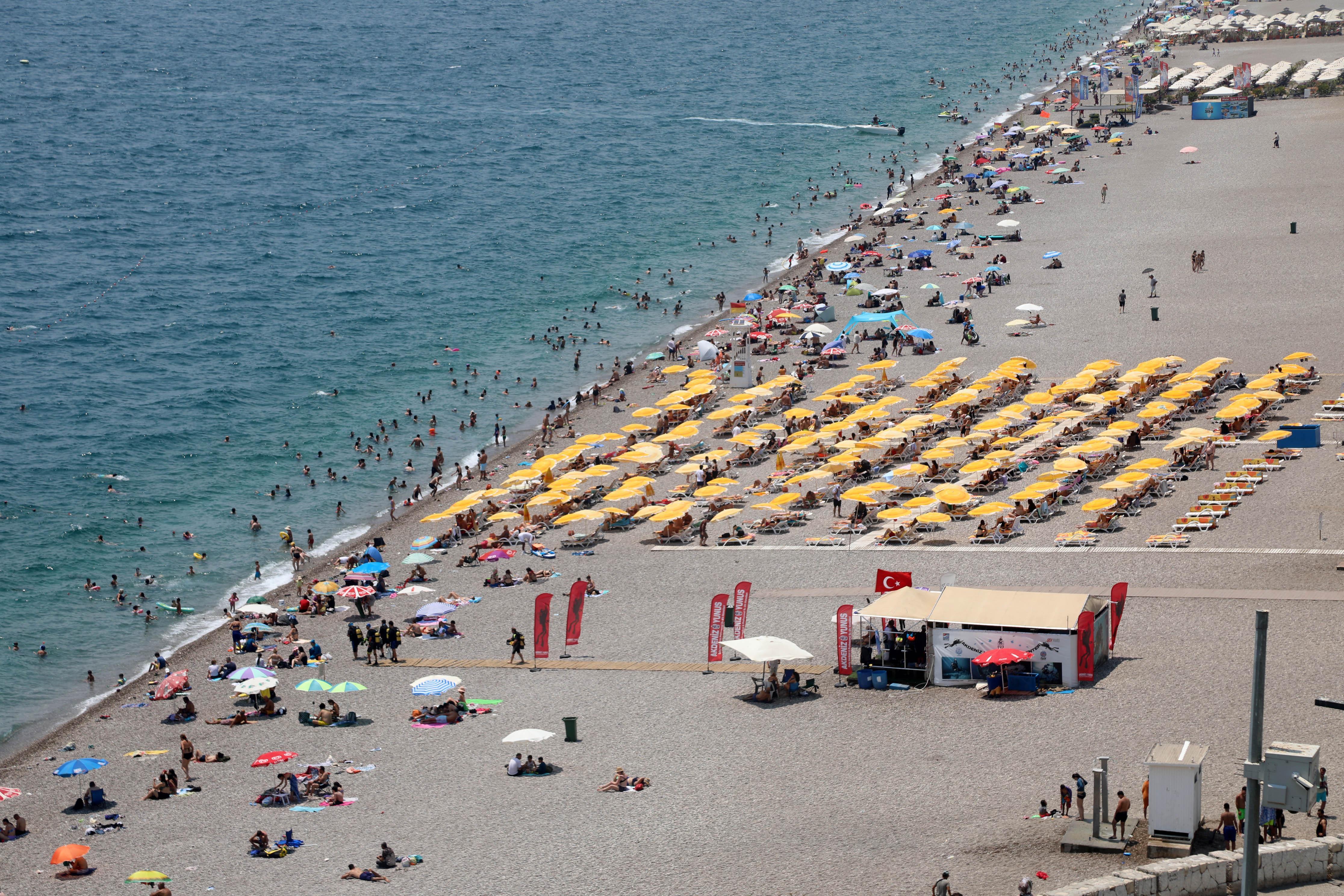 Antalya'da hissedilen sıcaklık 44 dereceyi bulunca sahiller doldu